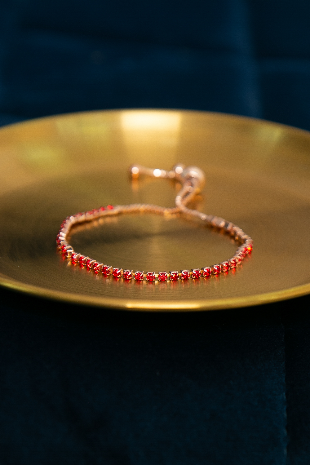 Тончайшая нить кристаллов красного цвета дополнит Ваш вечерний образ.