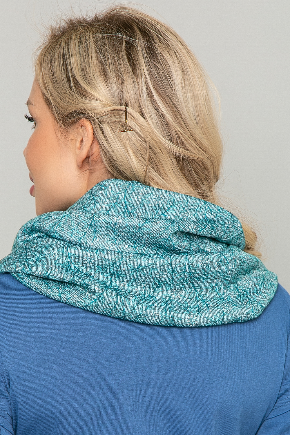 Снуд двойной из мягкой трикотажной ткани очень удобен в прохладное время года. Его не нужно долго завязывать и он может заменить шапку или капюшон. Снуд не только практичный, но и оригинальный элемент гардероба.
