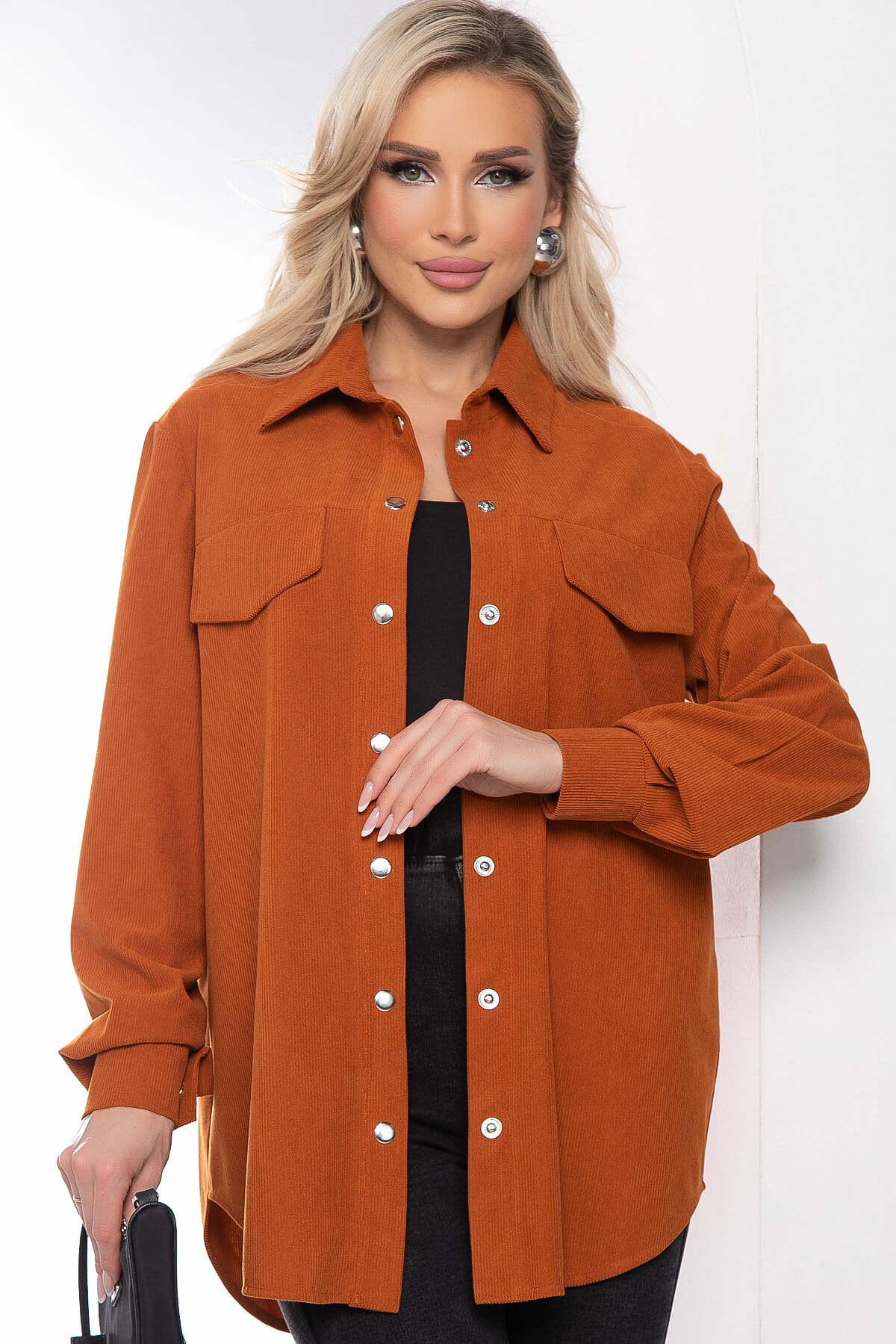 Рубашка из микровельвета в стиле оверсайз - абсолютно незаменимая вещь. С её помощь можно создавать большое количество образов и чувствовать себя комфортно. Рубашка застёгивается на кнопки, рукав втачной, длинный, на мажете. Манжет также застёгивается на кнопку. По переду имитация карманов с клапаном. Сочетайте её с джинсами или брюками, вносите яркие акценты в повседневные образы!