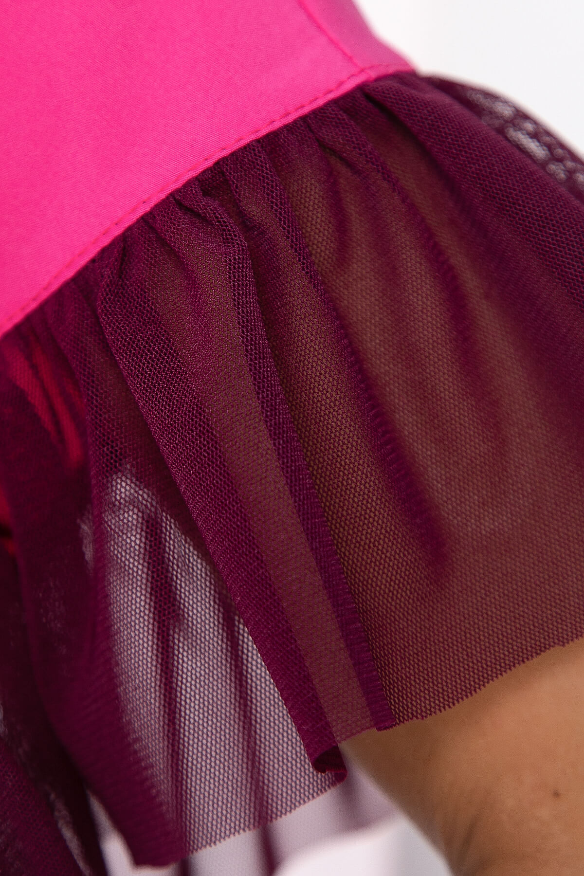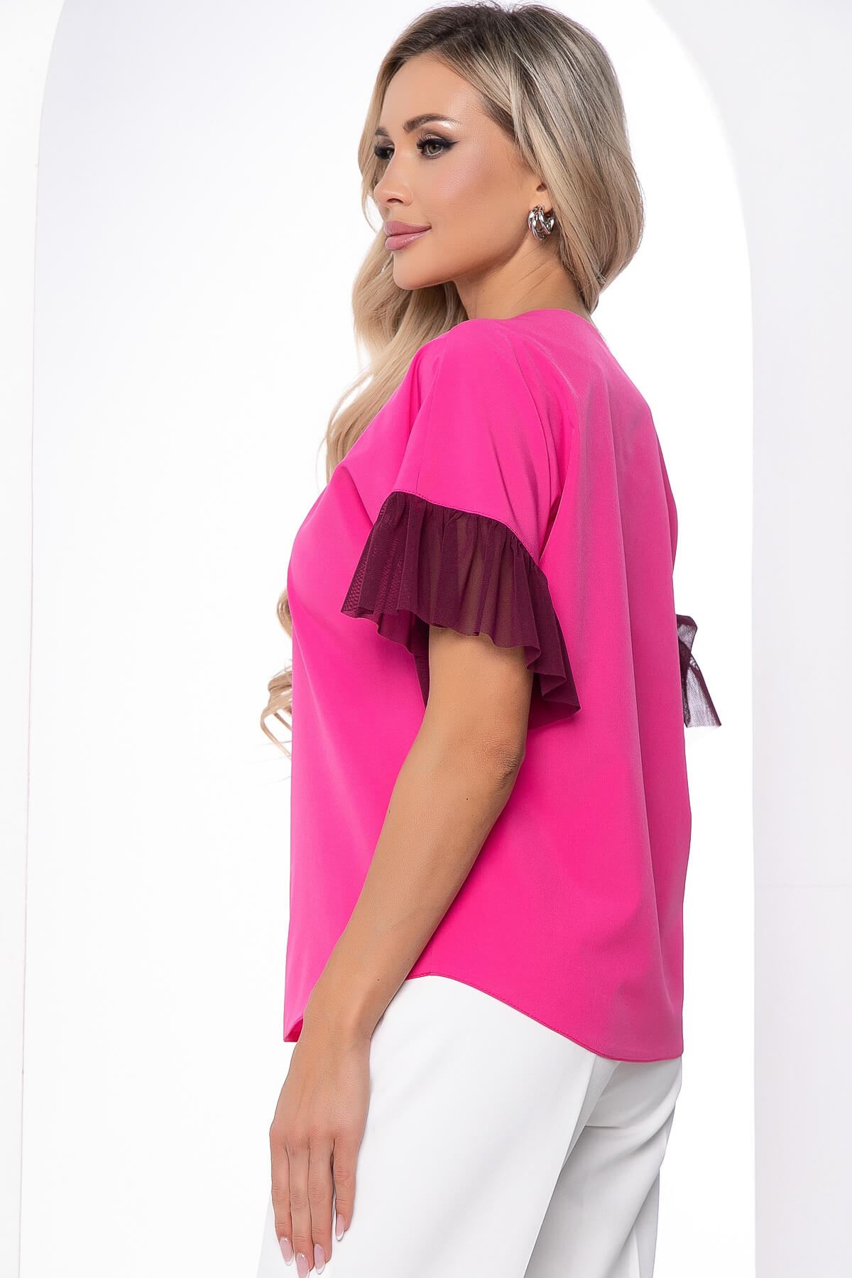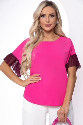 Базовая женская блуза свободного кроя из приятной к телу блузочной ткани. Такая блуза может стать основой не только делового гардероба, но и вечернего наряда. Оригинальный дизайн объединяет в себе классику кроя базовой блузы и трендовый декор в виде присборенной сетки на рукавах. Сетка выполнена в контрастном варианте подходящего подтона основному цвету изделия. Горловина-лодочка комфортного размера без застежки, а укороченный рукав-кимоно позволит чувствовать себя свободно и не будет стеснять вас в движении.