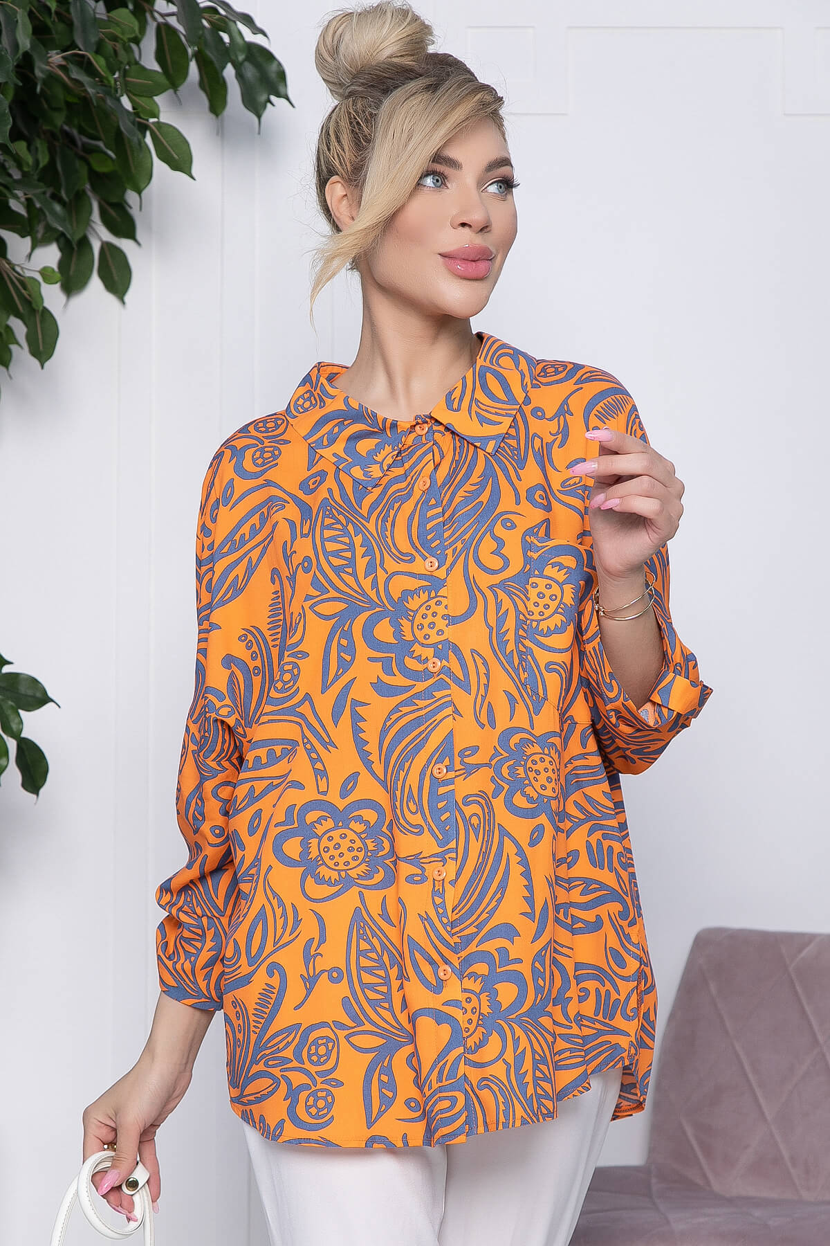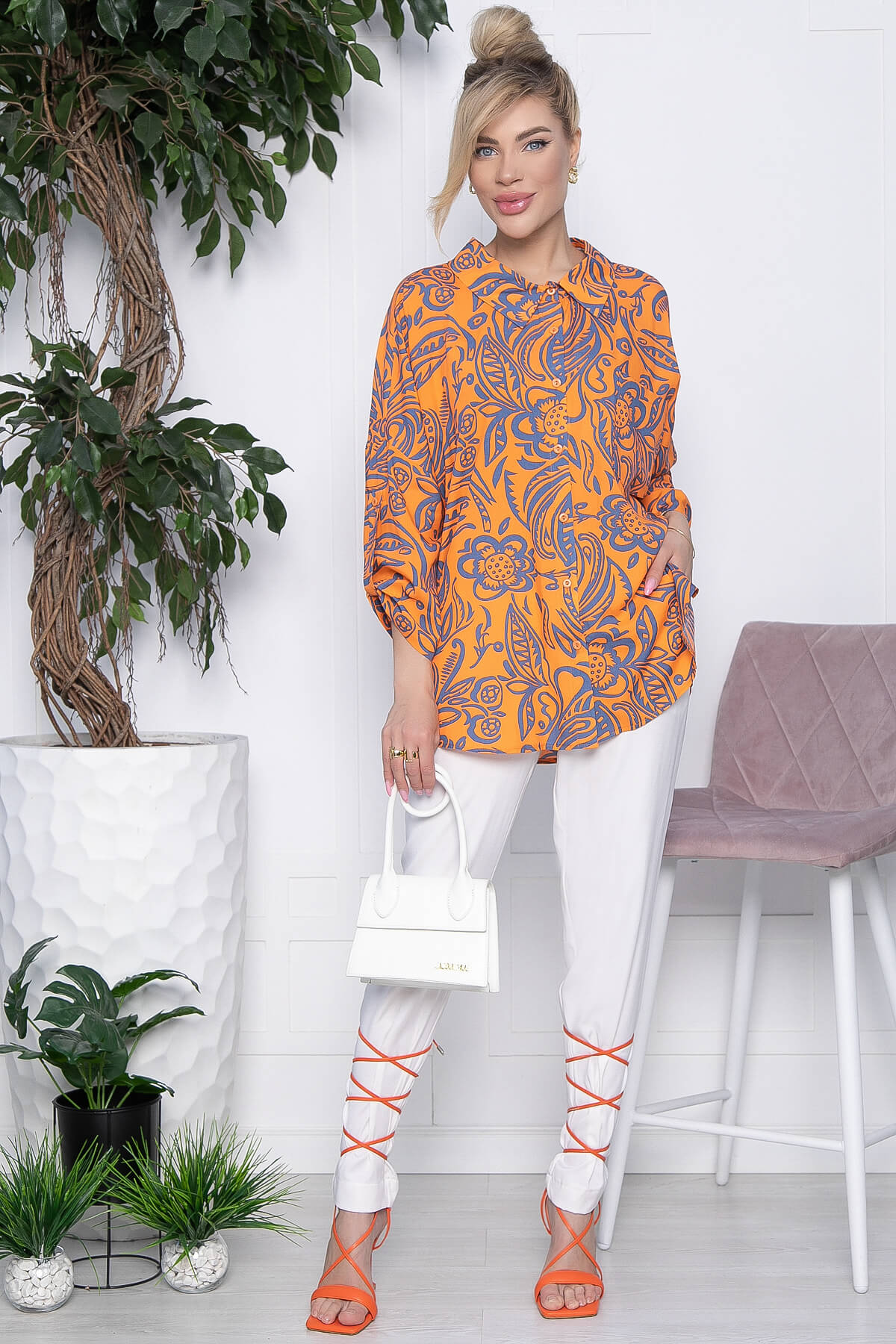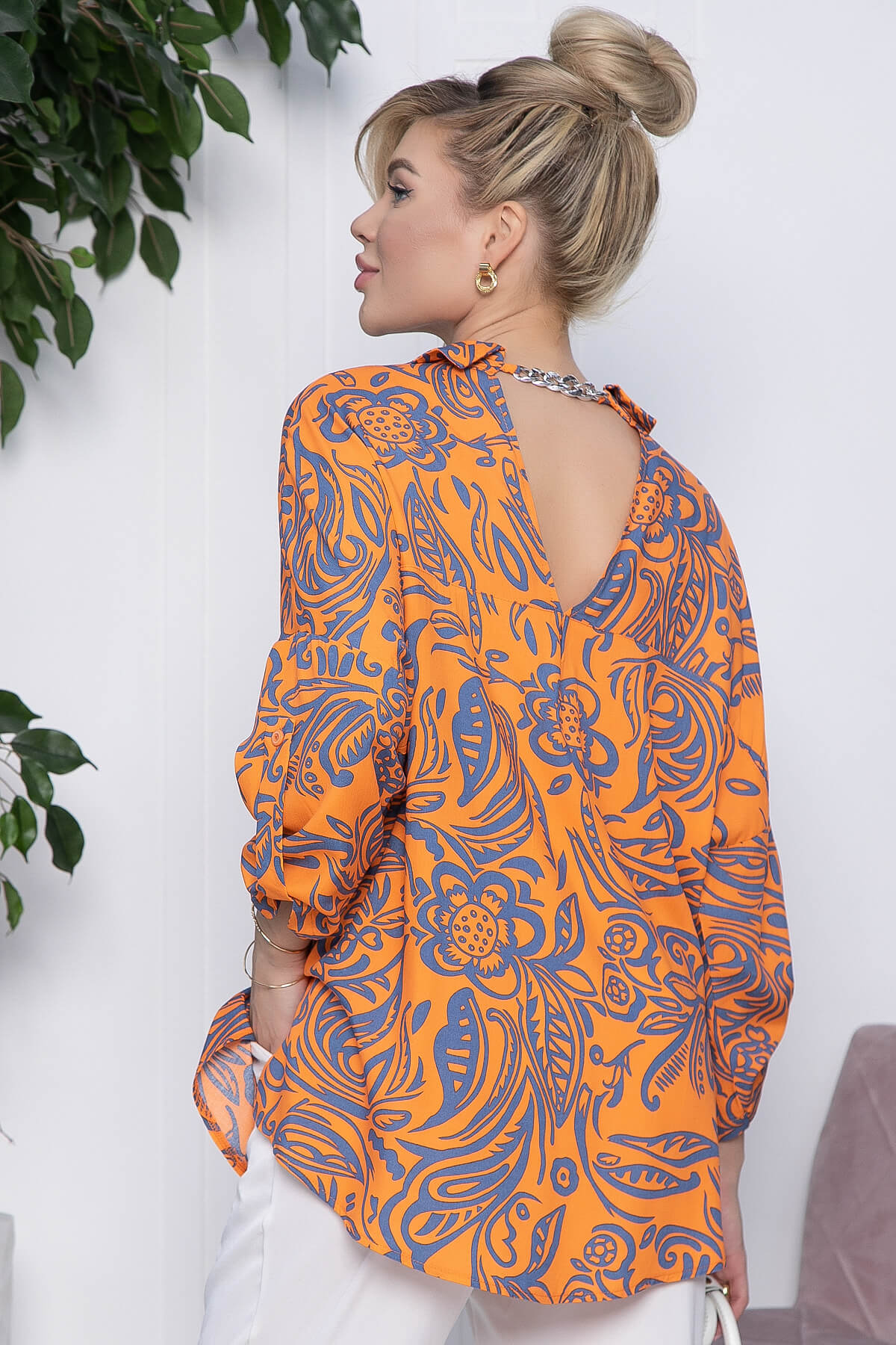 Лёгкая рубашка свободного кроя с акцентной спинкой. Классический отложной воротник по переду, по спинке украшен цепочкой серебряного цвета. Такая рубашка подойдёт для создания стильного летнего образа и будет гармонично смотреться в сочетаниях с джинсами, шортами и брюками.