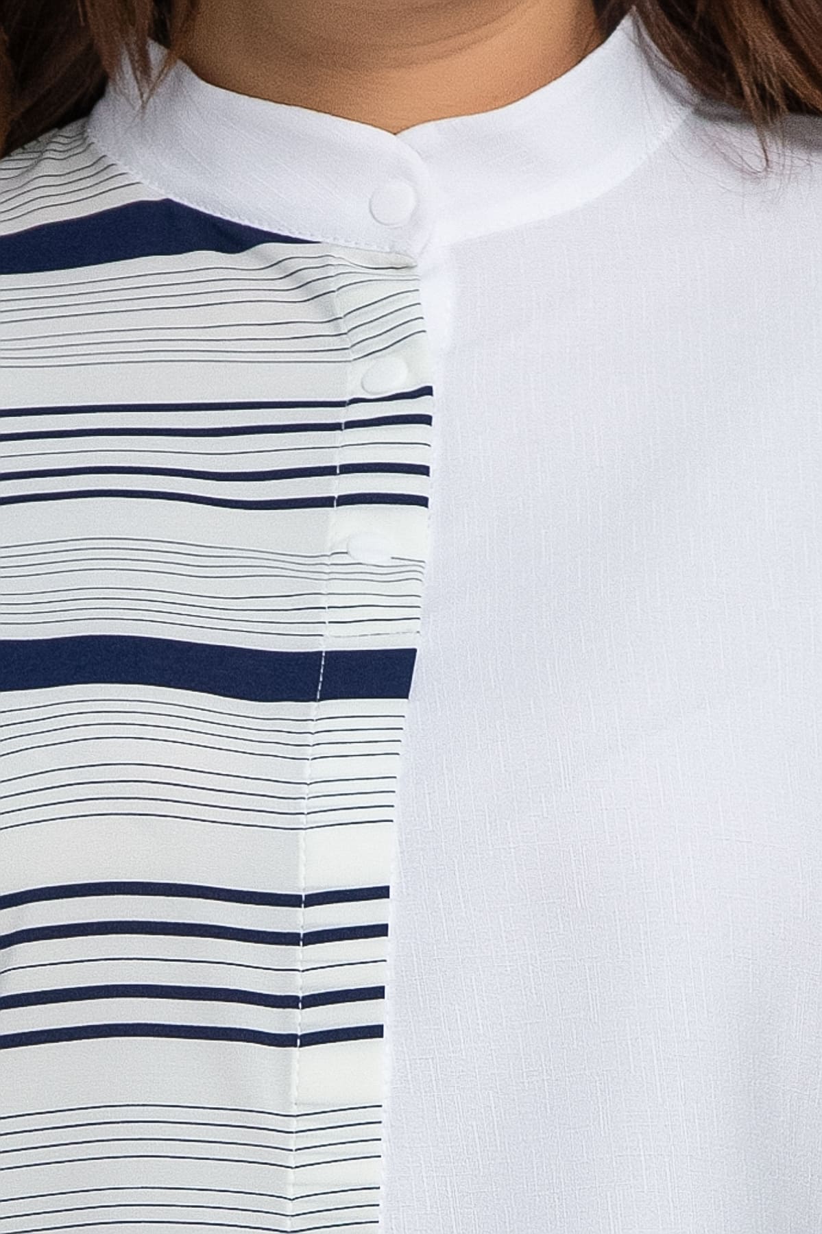 Свободная женская блузка — превосходный выбор для тех, кто стремится обновить свой повседневный стиль, не стесняя движений. Спущенное плечо добавляет нотку расслабленности, а короткий рукав и горловина-стойка делают эту модель удобной и практичной. Низ блузки регулируется завязками, что даёт возможность адаптировать её под особенности вашей фигуры.