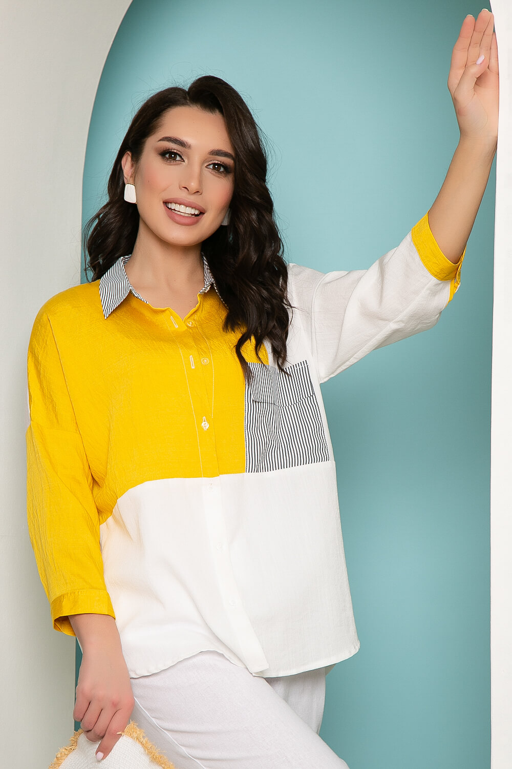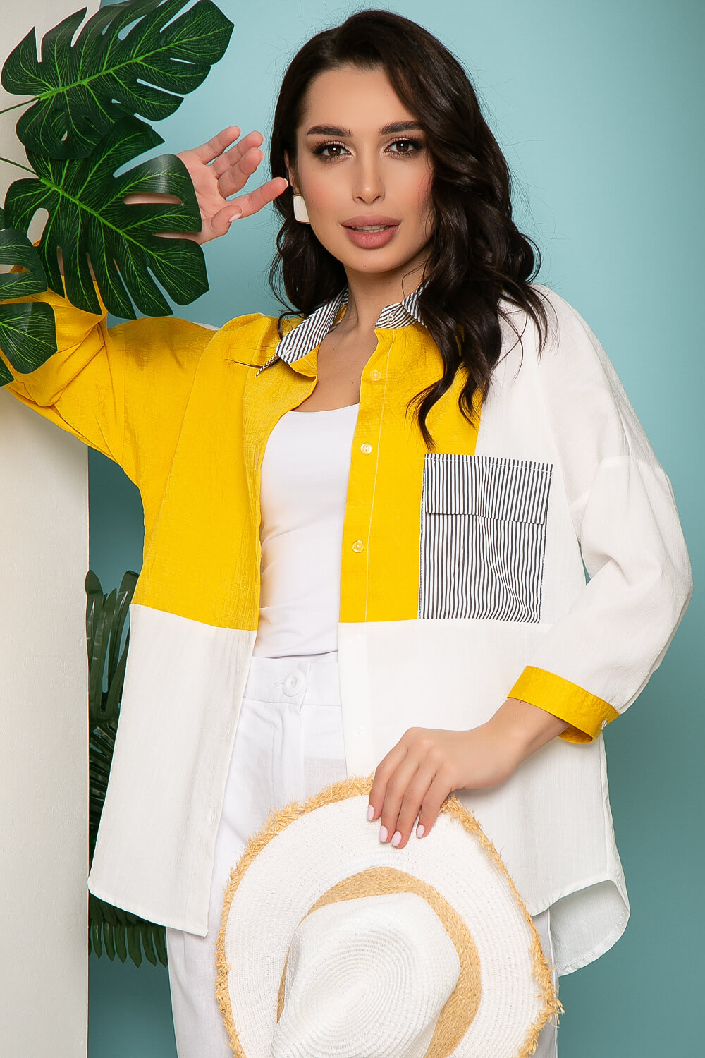 - Цвет: белый, горчица. Принт: полоска (кармашек, воротник);