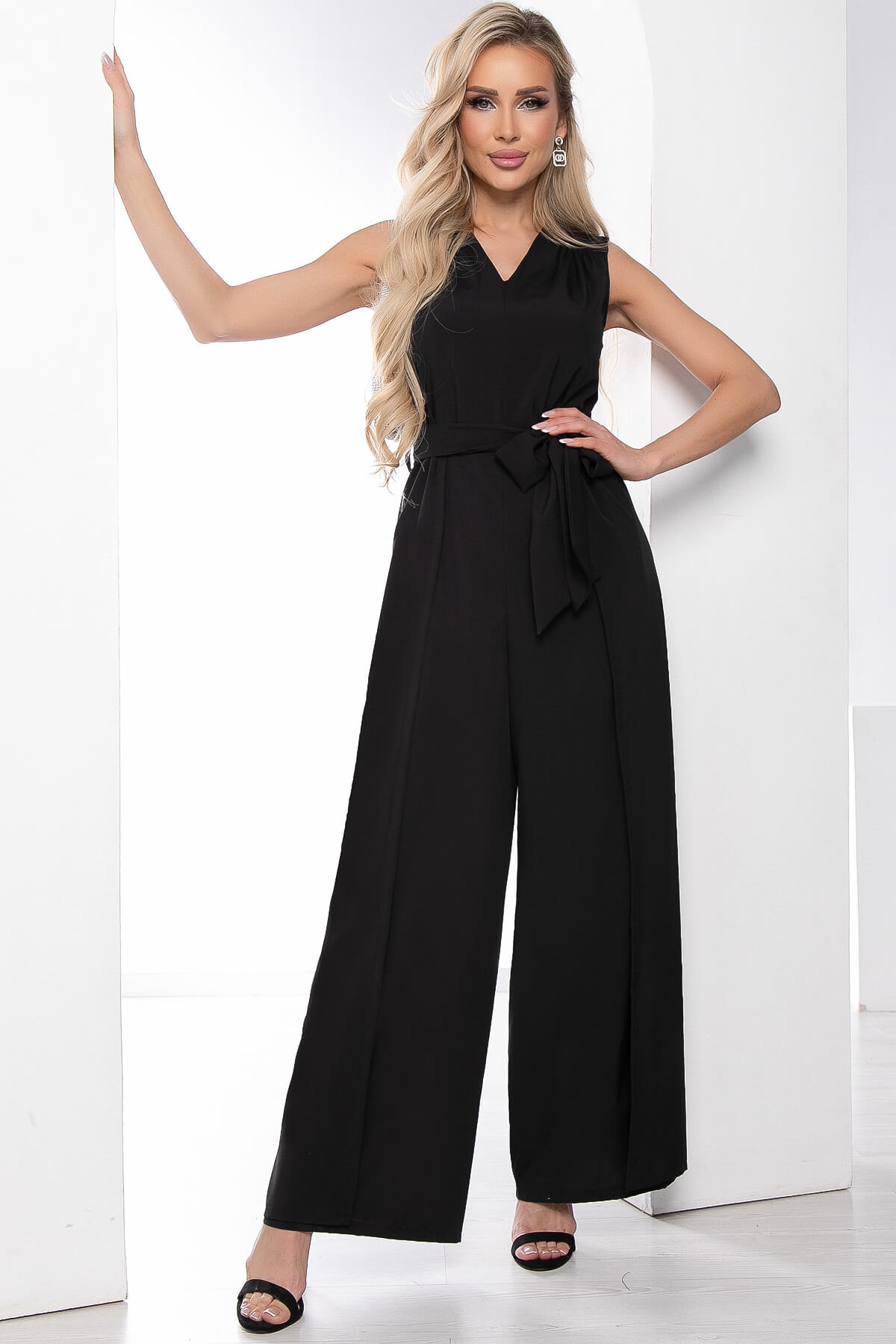 Роскошный комбинезон с широкими брюками на запах. В таком наряде можно появиться один раз в свете и остаться в памяти навсегда! Легкая драпировка в области груди добавляет немного объема, а пояс эффектно подчеркивает талию, обеспечивая образу утонченный стиль. По спинке застежка на потайную молнию. В таком комбинезоне вы будете неотразимой и чувственной.