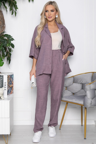 Летний брючный костюм из легкой ткани – один из лучших вариантов в жаркую погоду! В нём вы будете себя чувствовать уверенно и комфортно. Можно носить совместно так и раздельно. Этот брючный костюм подойдет как для дома, так и для выхода на пляж или вечернее мероприятие. Жакет свободного кроя на пуговицах, рукав 3/4 спущенный на манжете. Брюки полуприлегающего силуэта на резинке, есть карманы.