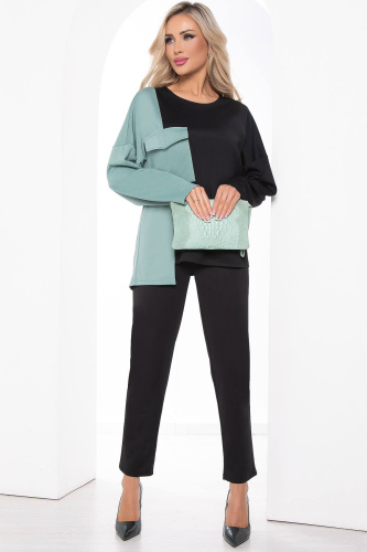 Костюм-двойка, состоящий из брюк, зауженных к низу, с высокой посадкой на резинке и джемпера свободного кроя с акцентной вставкой. Преимущество комплекта в том, что вы сможете самостоятельно носить как джемпер, так и брюки. В повседневном образе смело сочетайте с лоферами или ботинками, а если нужен более официальный образ, с туфлями на каблуке.