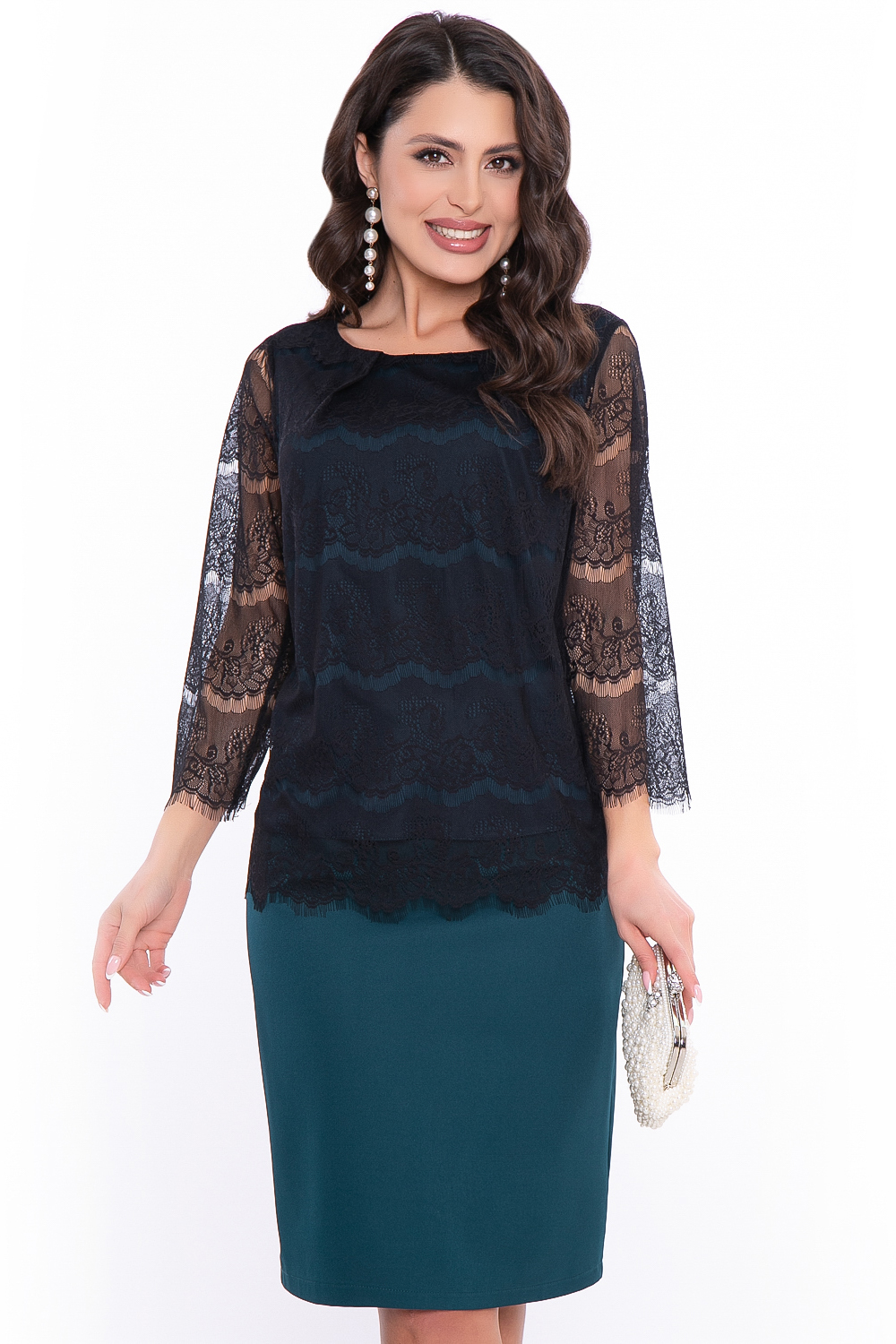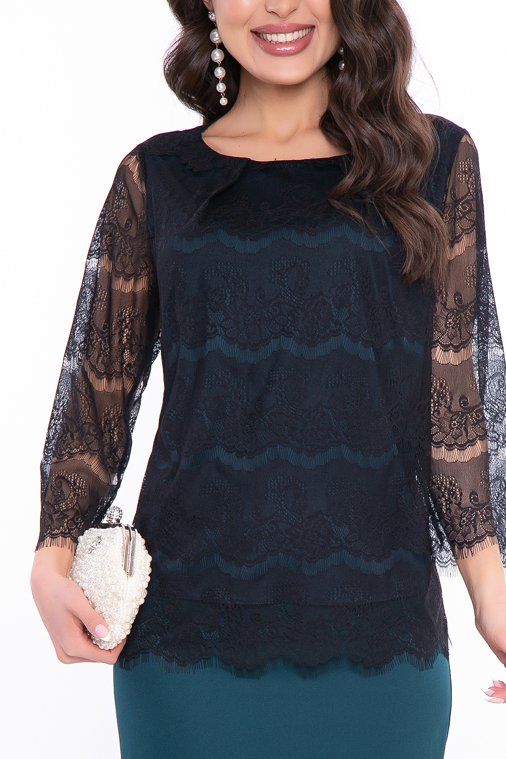 - Блуза свободного кроя, верх выполнен из гипюра, рукав втачной, три четверти;