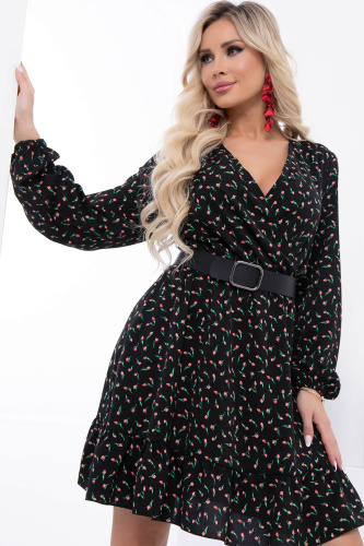 Невероятно стильное платье не оставит вас равнодушным! Оно собрало все элементы женственности. Изделие украшает V-образный вырез с имитацией запаха. Рукав длинный, по низу на резинке. В комплект входит ремень, который отлично подчеркнет линию талии!