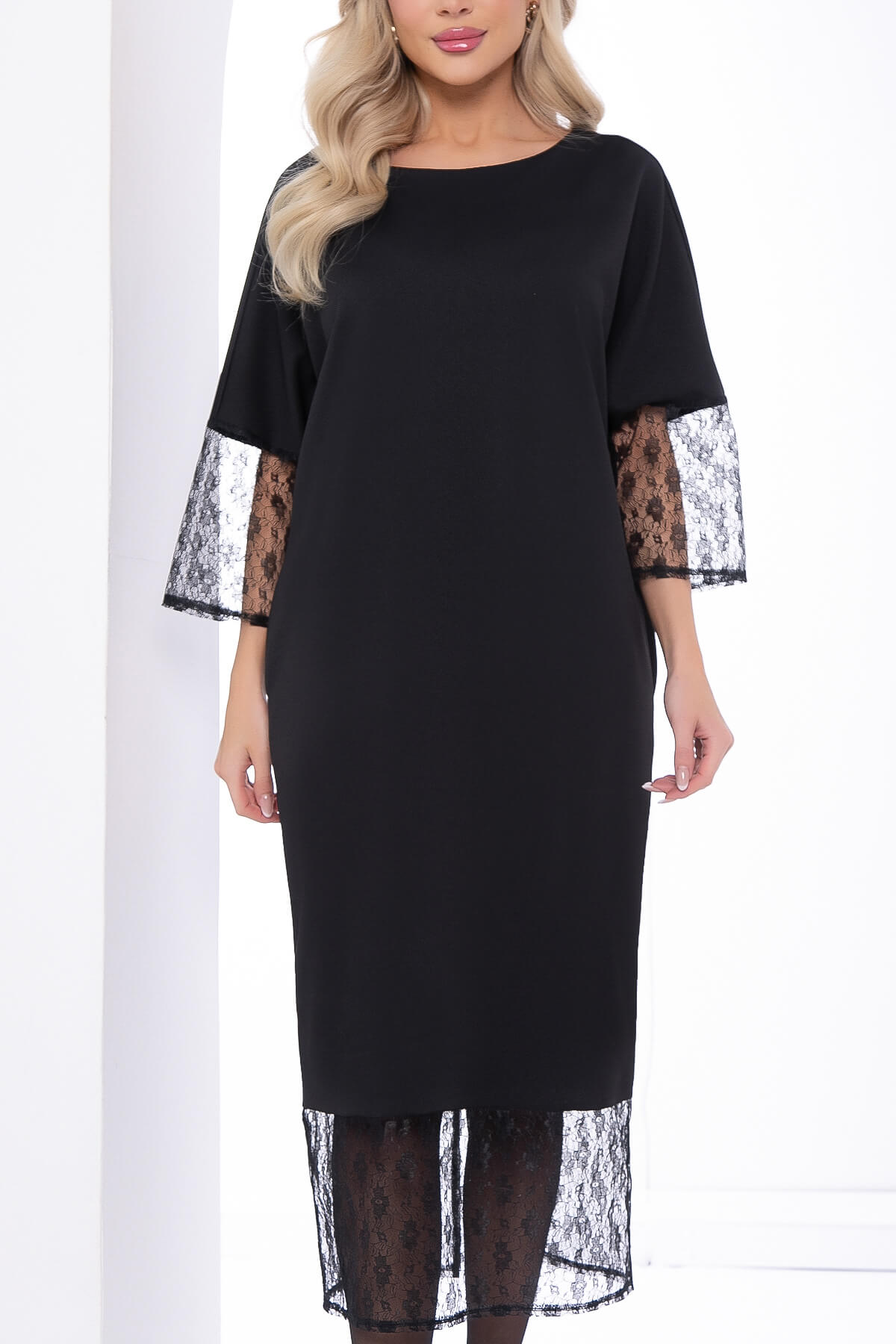 Платье свободного кроя с декоративными вставками из гипюра по низу изделия и на рукавах. Идеальный вариант на любое торжественное мероприятие! Рукав цельнокроенный, втачной. Свободный крой платья позволит скрыть недостатки фигуры.