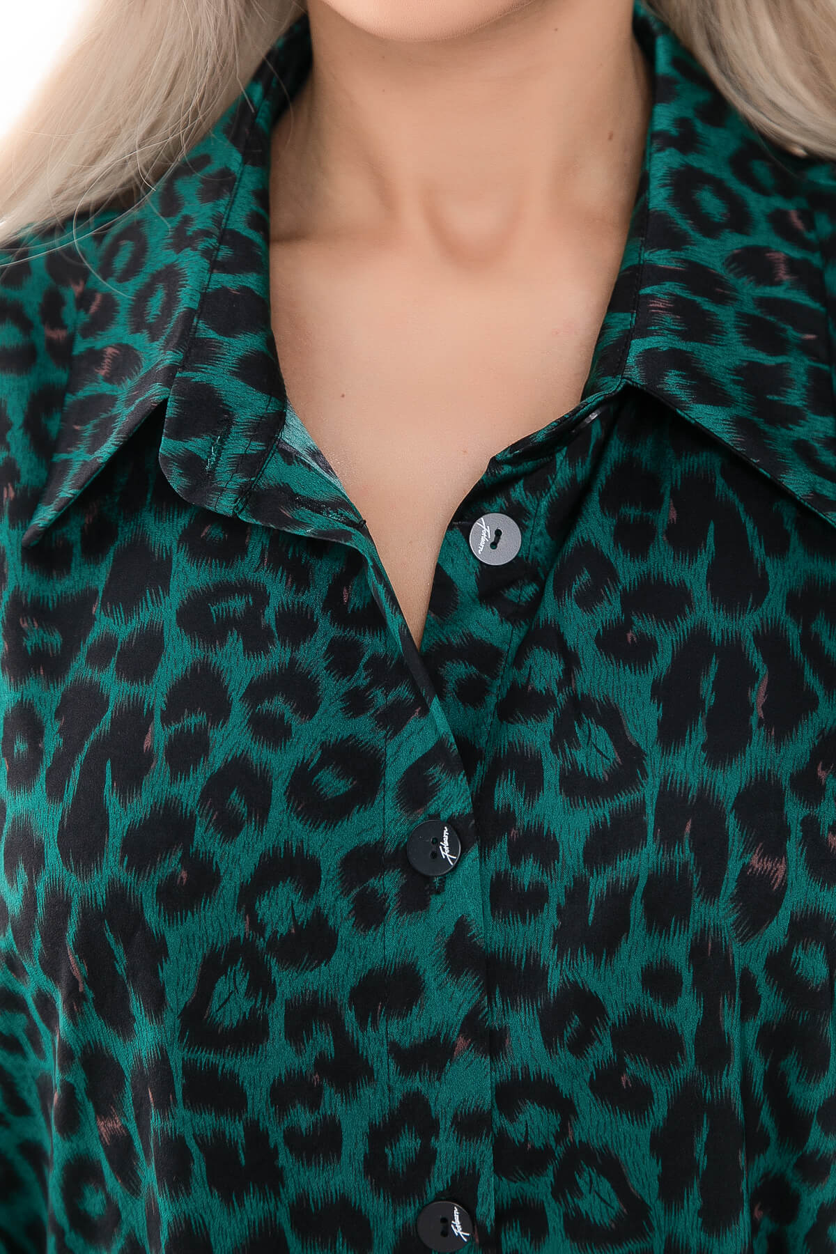 Леопардовый принт в одежде вновь на пике моды! Достаточно пестрый и яркий принт, он лучше всего смотрится в паре с нейтральными оттенками. Фавориты – бежевый и черный в однотонном исполнении. Платье-рубашка прямого кроя, рукав три четверти, со спущенным плечевым швом, по низу манжет. Ремень из искусственной кожи входит в комплект.