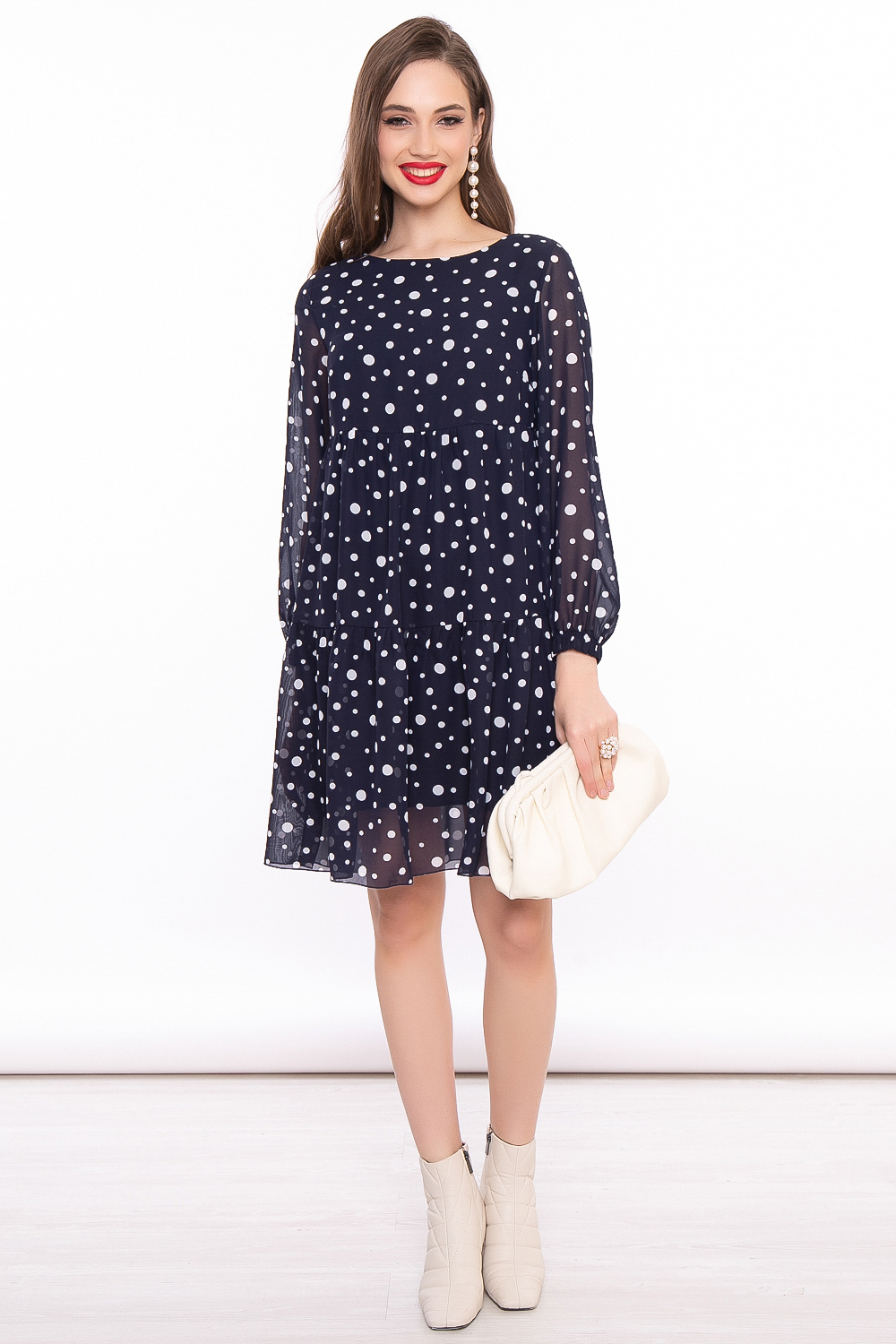 Удобное свободное платье с принтом "Горох" актуально в любой сезон и подойдёт как для создания повседневного, так и праздничного образа.