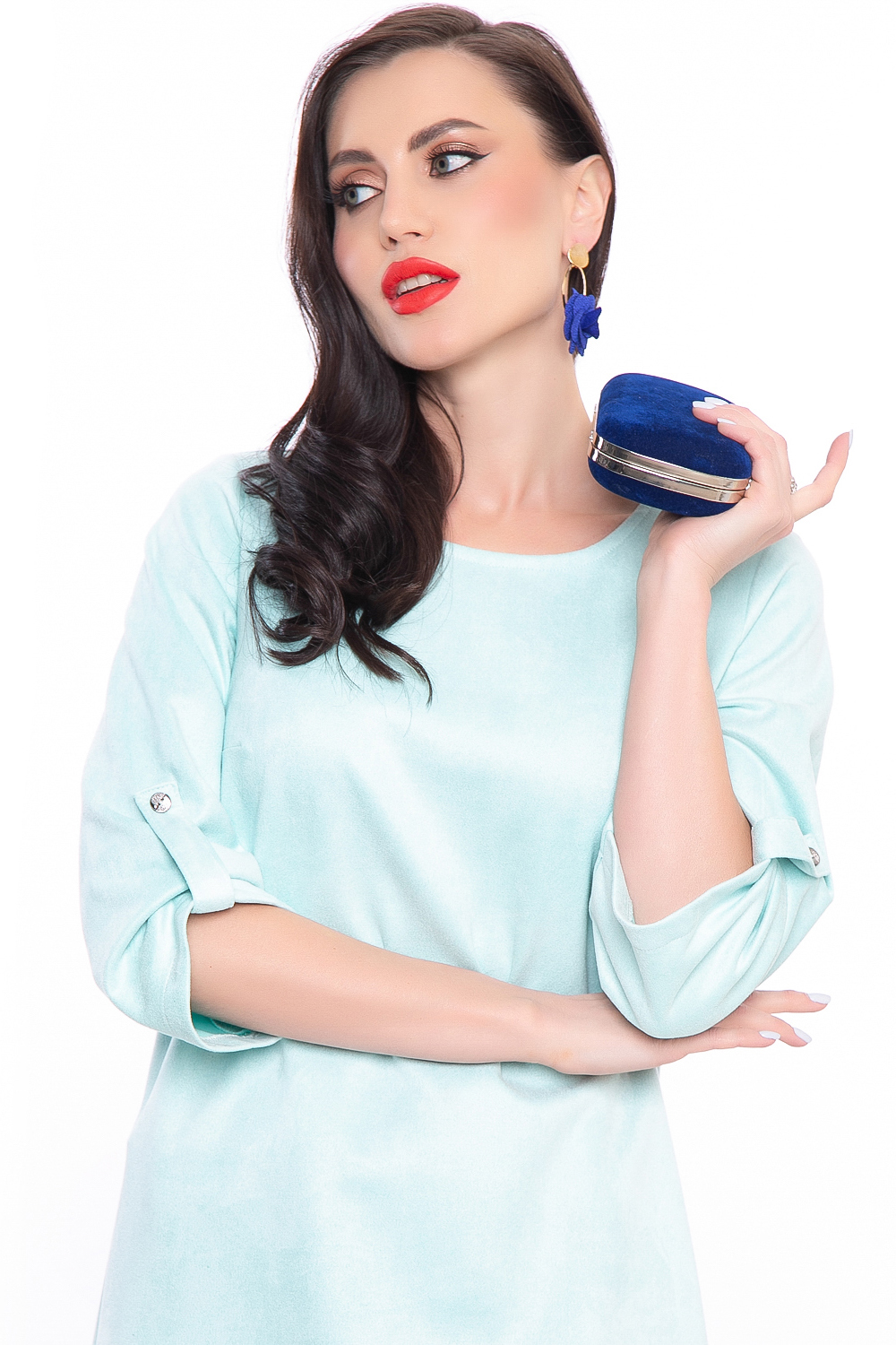 Замшевое платье средней длины на каждый день. Эта модель собрала в себе все тренды 2021-2022 года. Тут есть яркие цвета и обращающие на себя внимание детали вроде акцентных рукавов. При этом в числе модных тенденций этого сезона присутствуют минимализм и романтика, женственность и комфорт, которые так удачно сочетаются в этом платье.