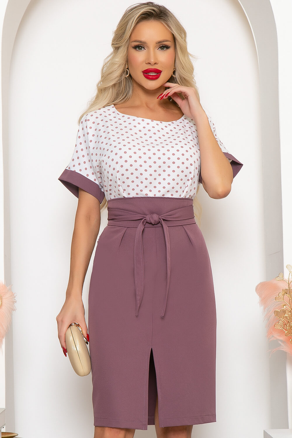 Элегантное платье в новом сочетании цветов подчеркнёт Вашу женственность, а его интересный крой расставит грамотные акценты в образе. Платье полуприлегающего силуэта, по переду защипы в области груди и талии, юбка разрезная по переду с деликатным разрезом, приоткрывающим ножки. Рукав укороченный, с манжетом. В комплекте пояс-кушак, позволяющий красиво подчеркнуть талию.