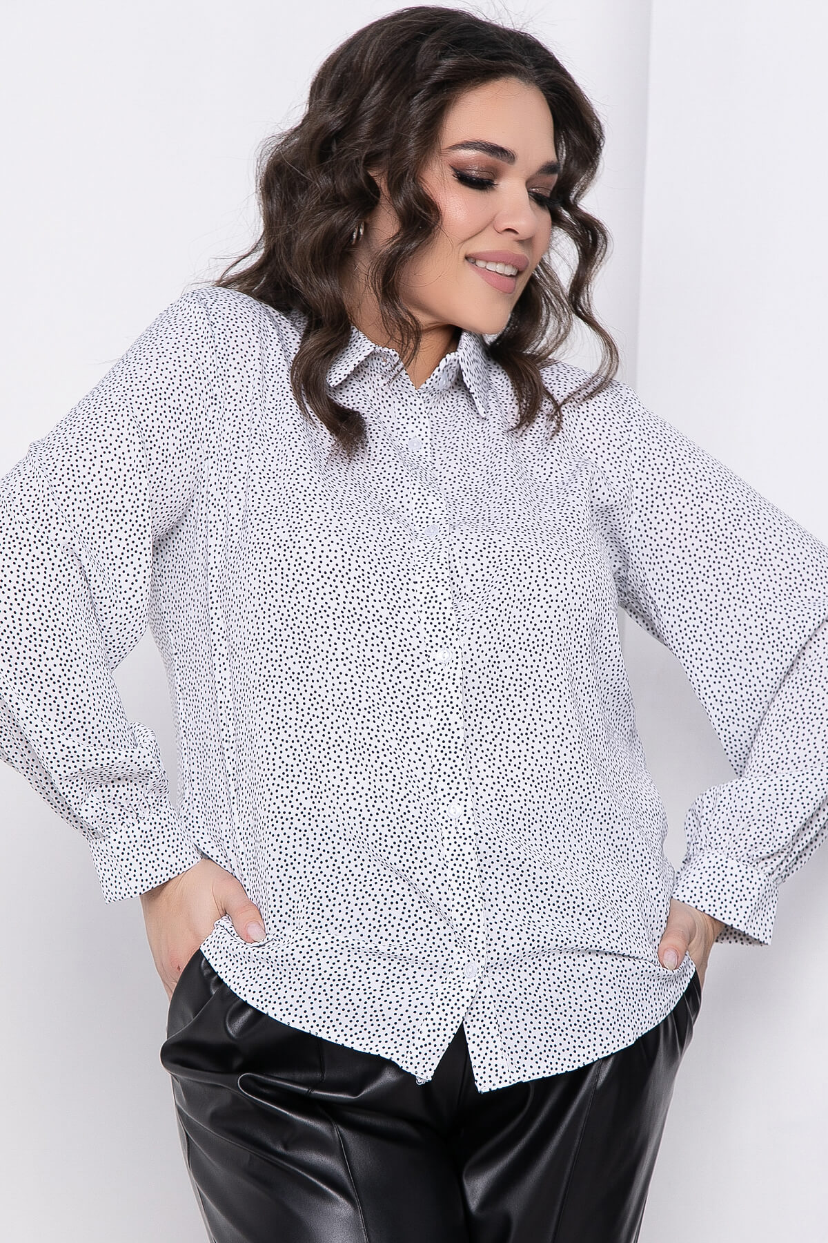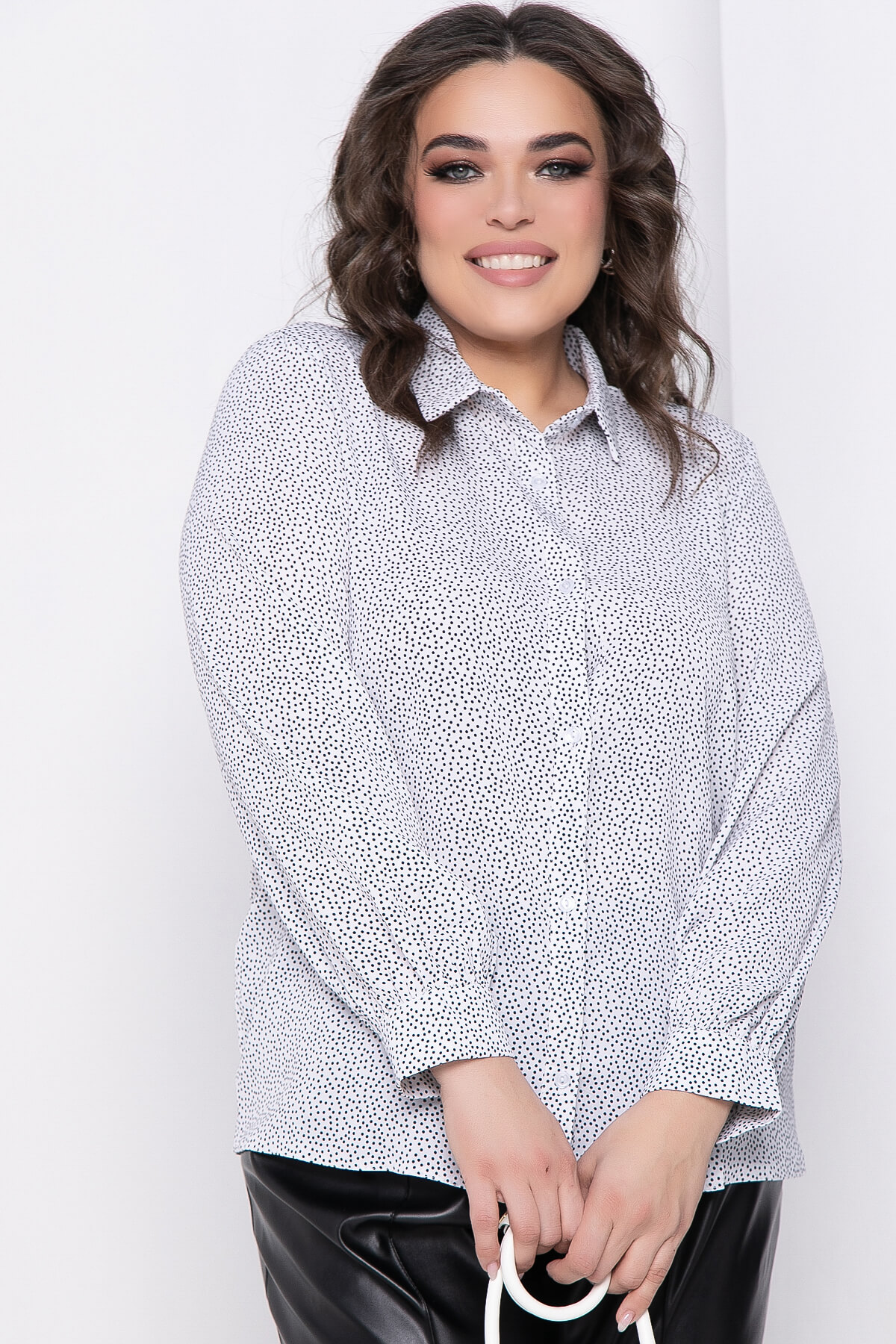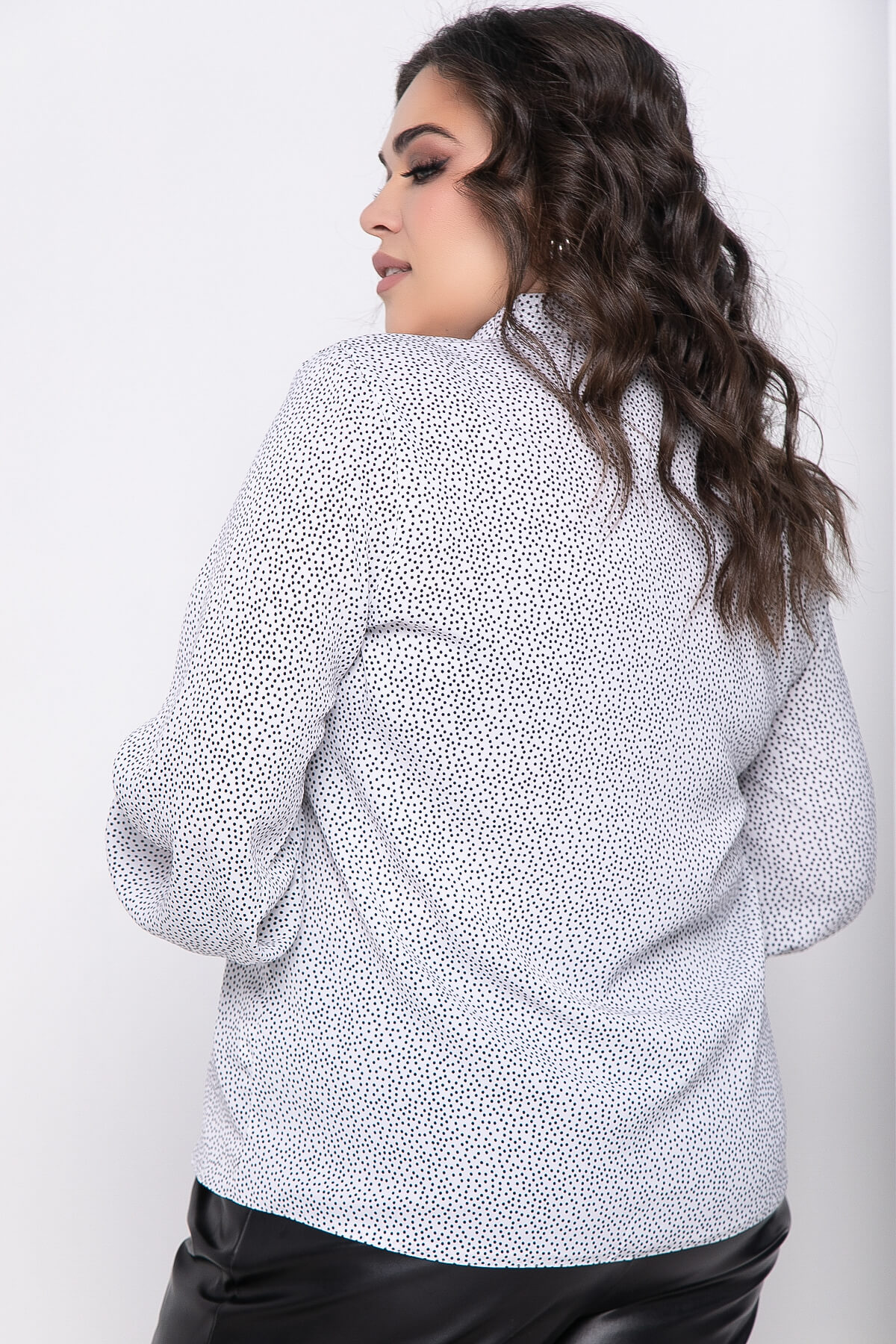 Классическая блуза в мелкий горошек - прекрасный вариант для офисных образов. Модель дополнена красивым акцентом - пышными рукавами на манжетах. По переду блуза застёгивается на пуговицы.