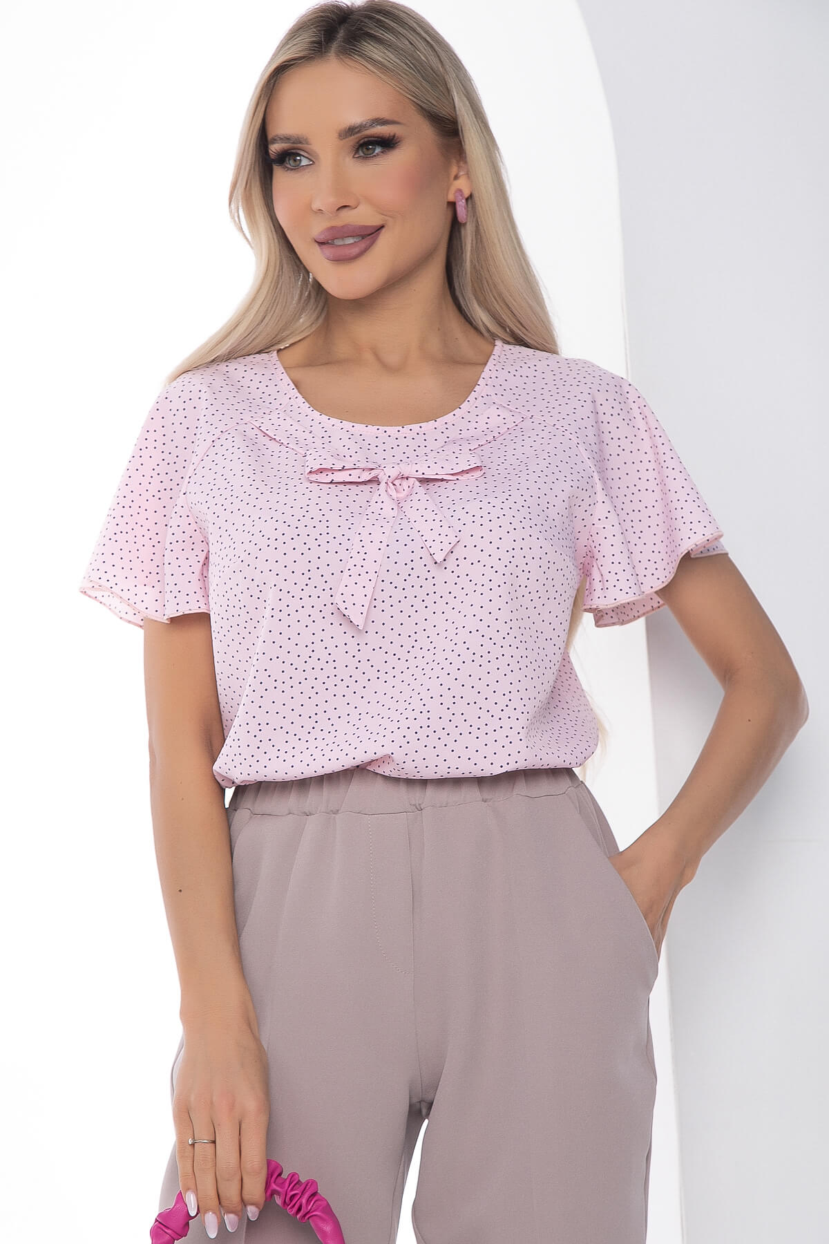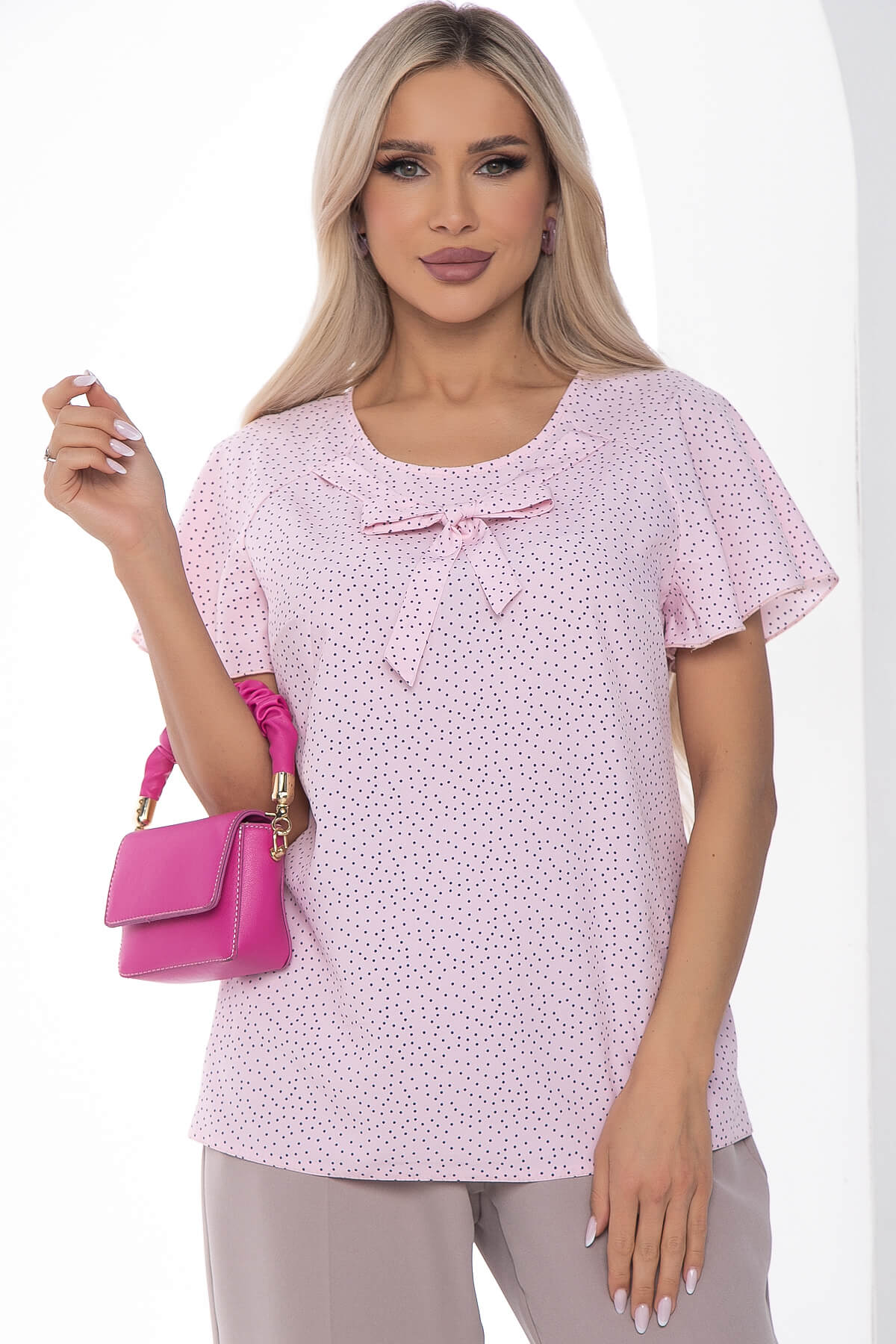 Женственная блуза с декорированным бантом выполненная из мягкого и приятного на ощупь материала, она обеспечивает комфорт и свободу движения. Актуальный принт и свободный силуэт делают эту блузку идеальной и универсальной. Рукав-реглан скроенный по типу "крылышко". Широкий размерный ряд позволяет носить блузу всем девушкам. Такая нежная модель отлично будет смотреться с однотонными брюками или юбками.