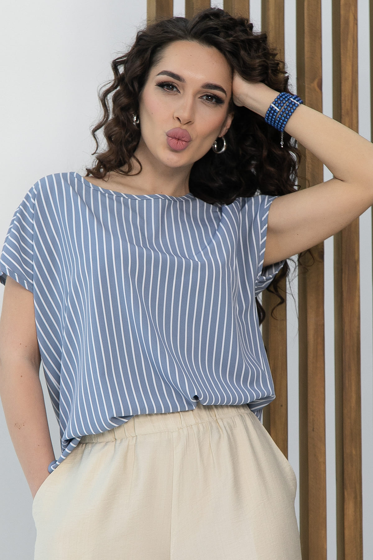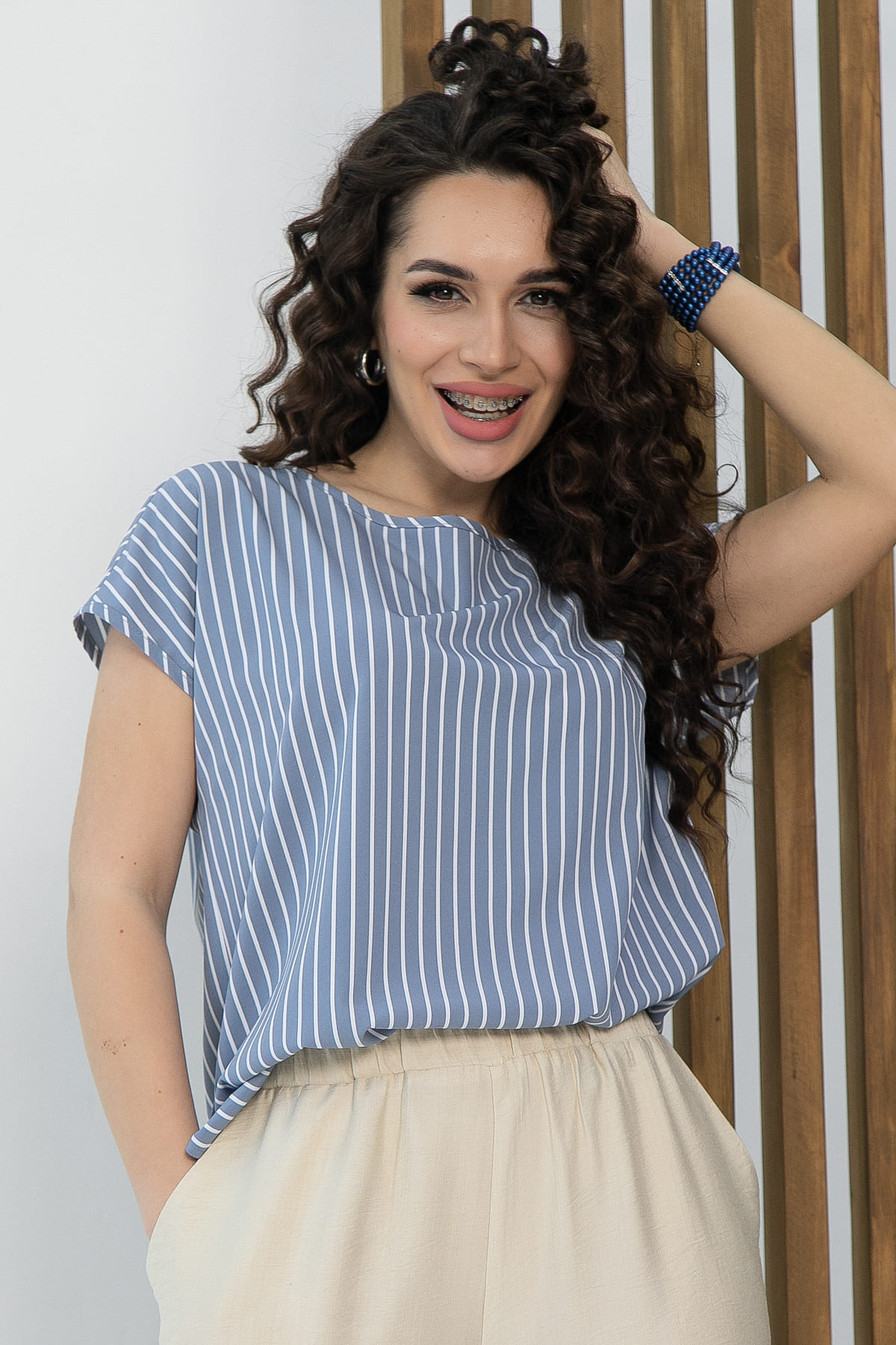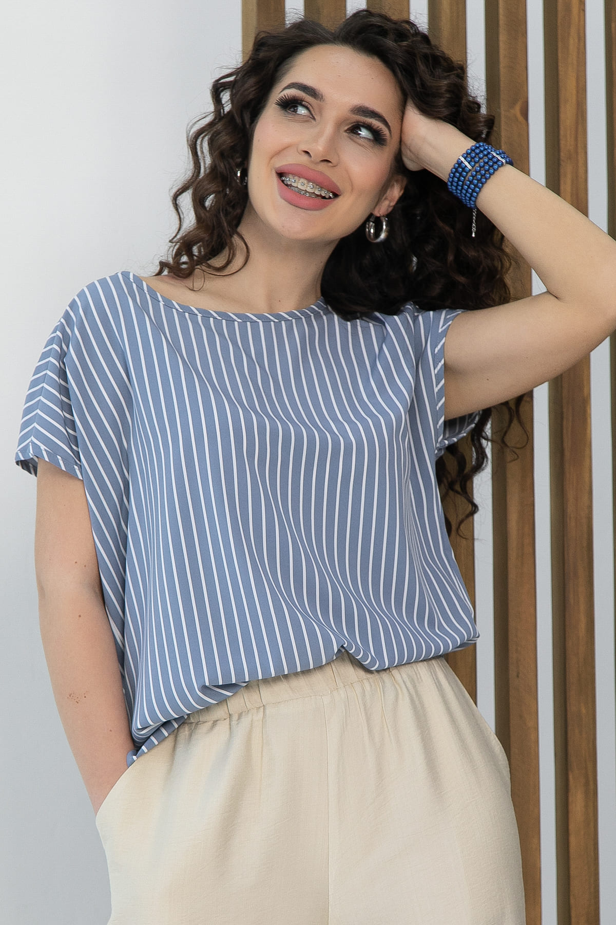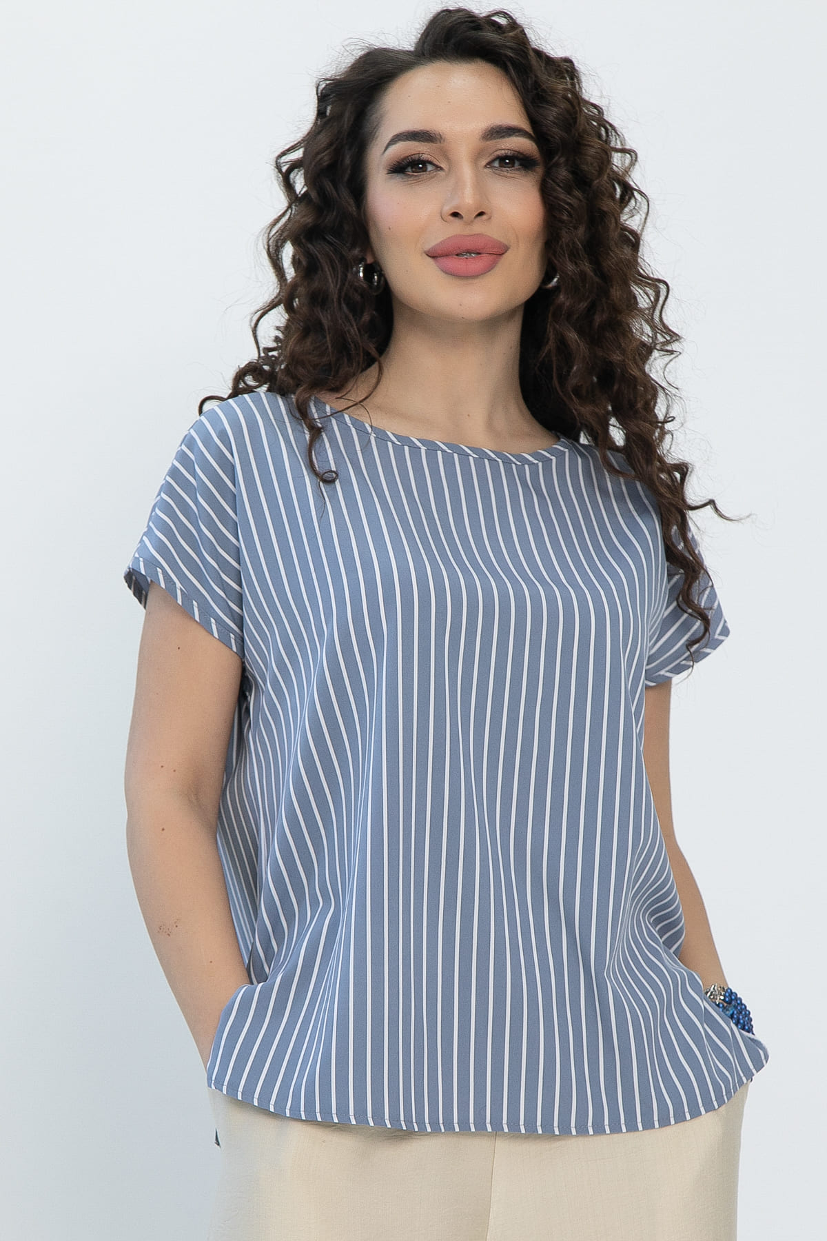 Классическая блуза прямого кроя в джинсовом цвете — отличный выбор для делового гардероба и повседневных образов. Стильная полоска придает ей современный и элегантный вид, делая универсальной для любых ситуаций. Она хорошо сочетается как с брюками, так и с джинсами. Рукав спущенный.