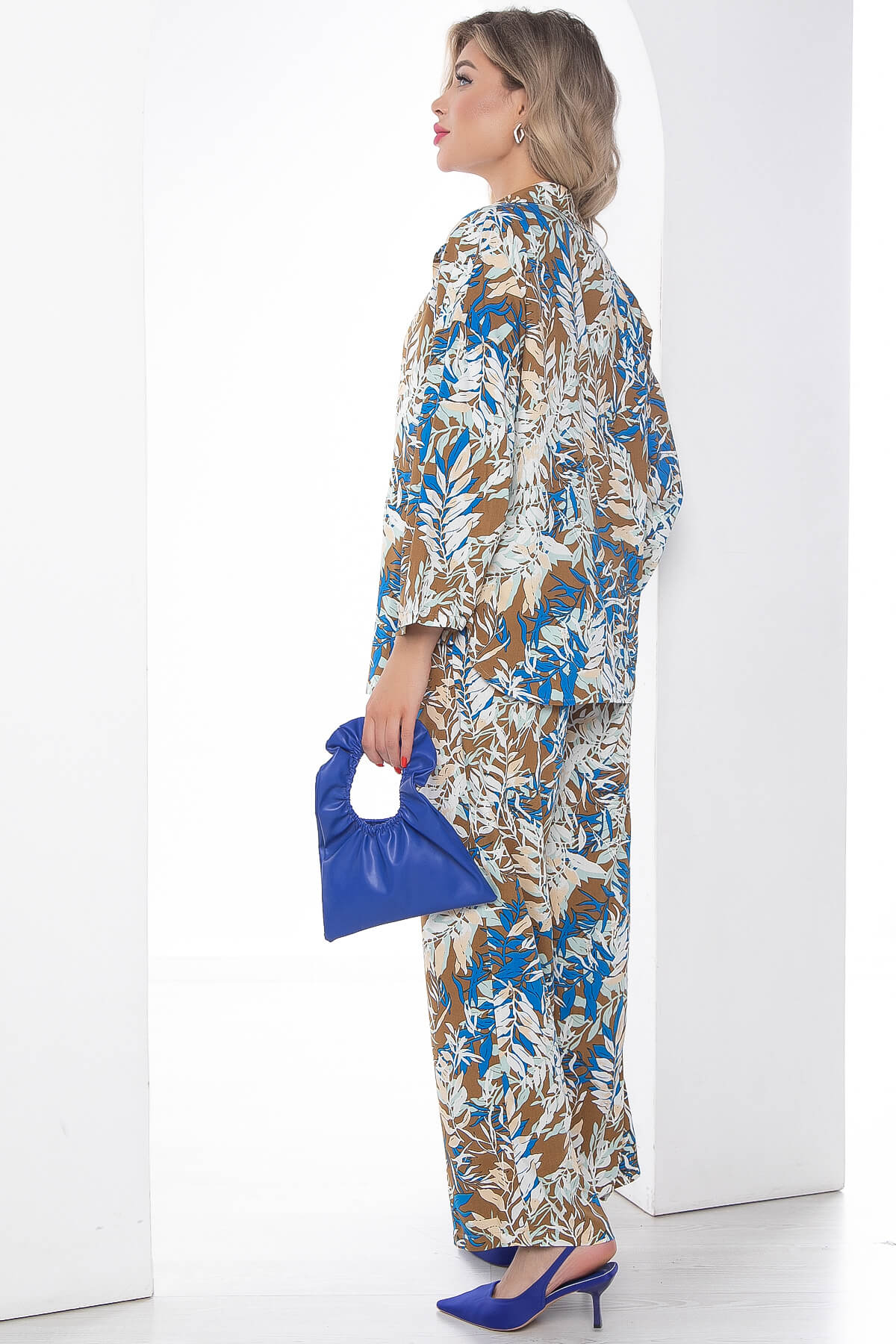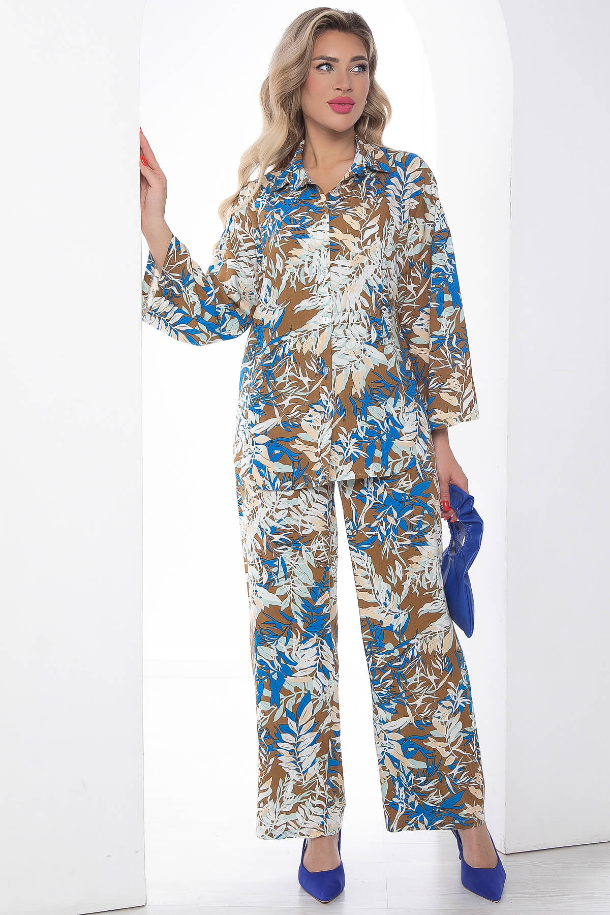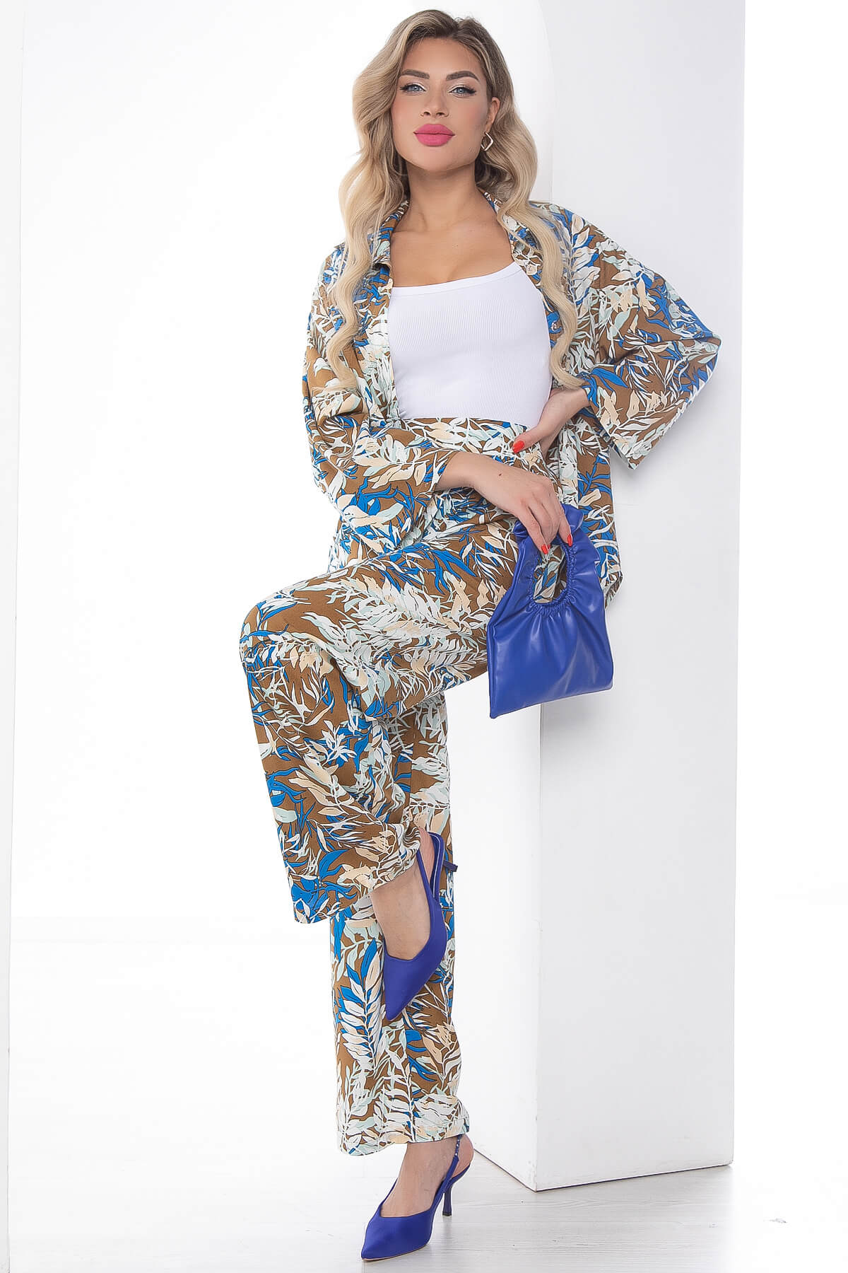 Костюм из лёгкой ткани, состоящий из свободной рубашки и брюк, идеально подойдёт для летнего расслабленного образа. Свободный крой не сковывает движений и дарит комфорт. Рукав три четверти, со спущенным плечевым швом.