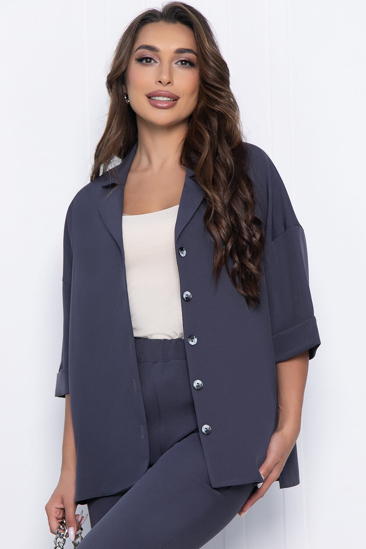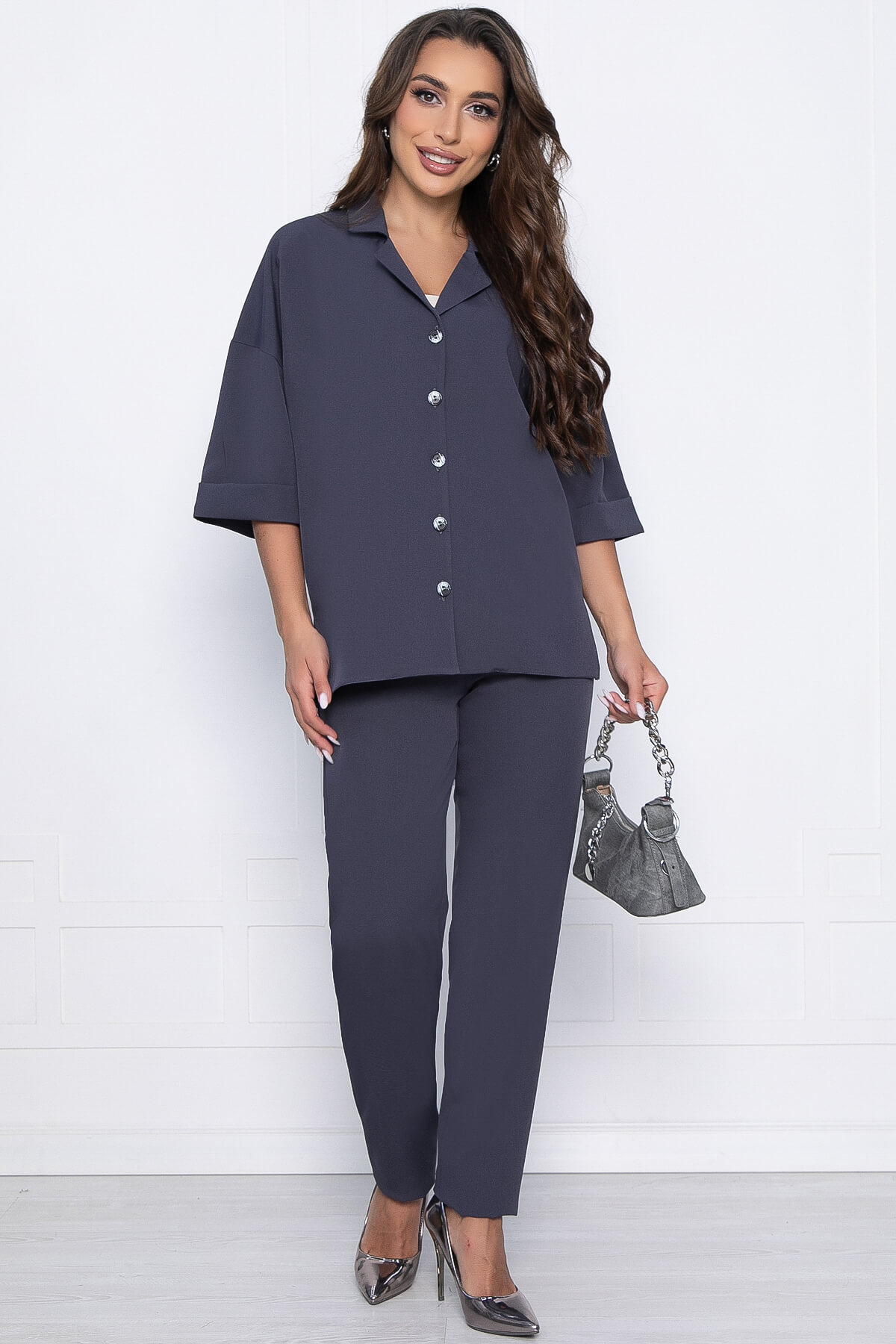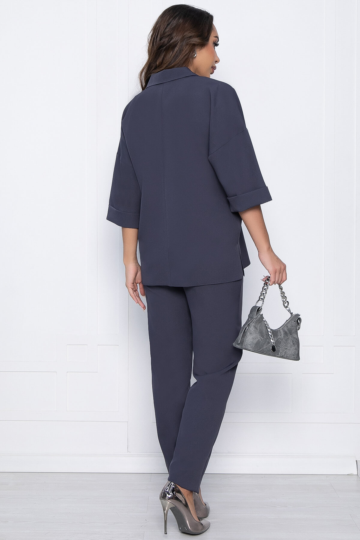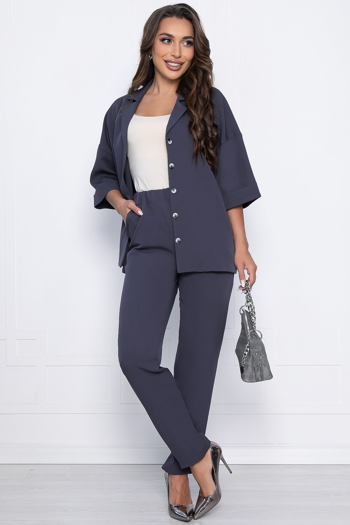 Брючный костюм в сером оттенке с короткими рукавами - один из лучших вариантов разнообразить гардероб! В нём вы будете себя чувствовать уверенно и комфортно. Можно носить как совместно, так и раздельно. Этот брючный костюм подойдет для работы в офисе, деловых встреч и мероприятий. Жакет свободного кроя на пуговицах, рукав 3/4, спущенный на манжете, разрезы по боковым швам. Брюки полуприлегающего силуэта на резинке, есть карманы.