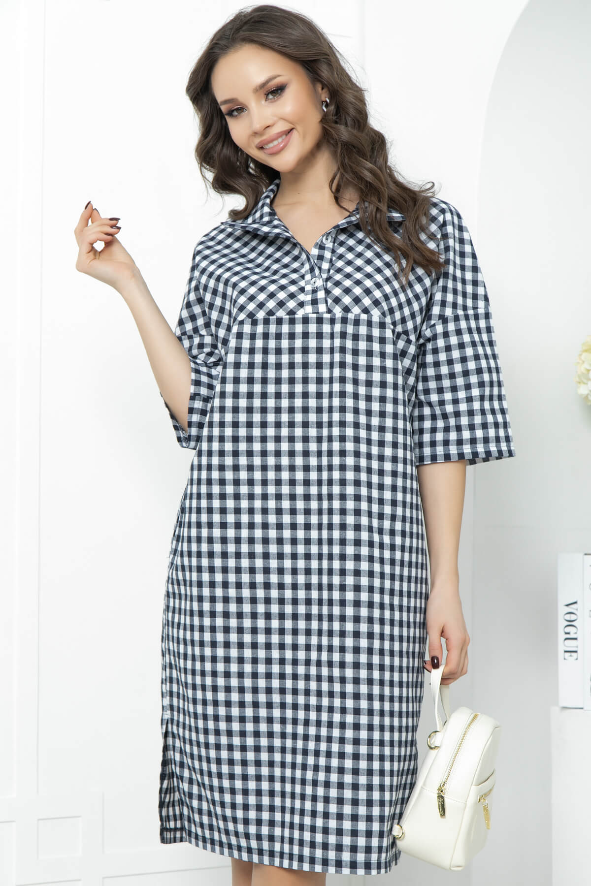 Сезонный хит - клетчатое прямое платье. Такой крой точно понравится модницам, оно отлично скрывает недостатки фигуры. По низу изделия есть небольшие разрезы в боковых швах. Изделие украшает стильный воротник-стойка, который подчеркивает индивидуальность, элегантность и придает особый стиль.