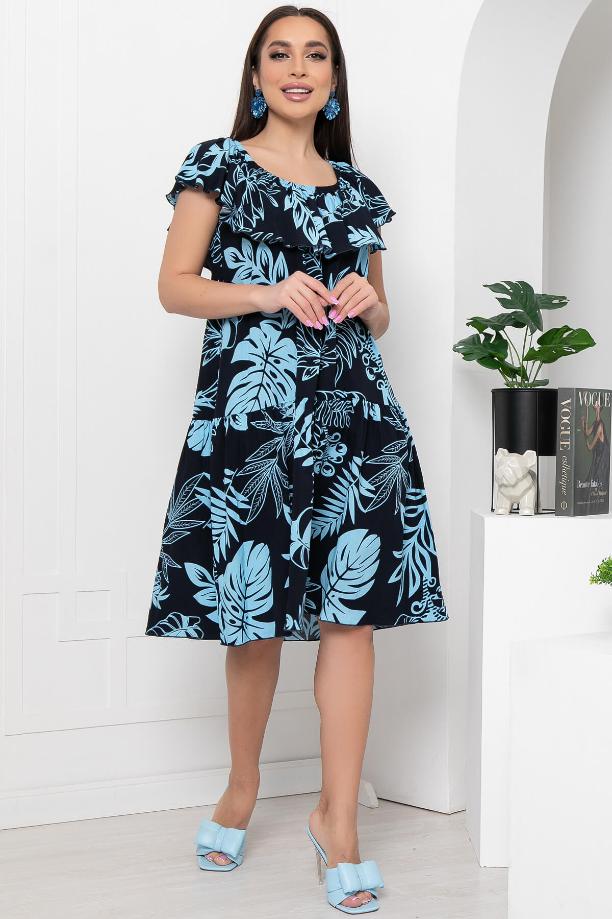 Платье свободного кроя изумительно смотрится как с каблучком, так и с кедами! Юбка с воланом по низу добавляет романтичности и воздушности образу. Изделие украшает акцентный рукав и вырез, позволяющий открыть одну из самых женственных частей тела - плечи и ключицу.
