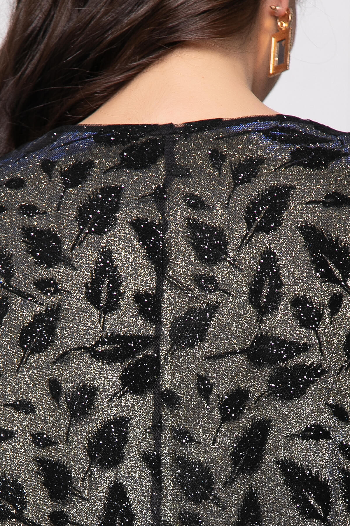 Легкое и воздушное платье создано для того, чтобы покорять сердца. невероятно мерцающее платье выполнено из переливающиеся ткани двух цветов. Изделие на подкладе. Свободный крой скрывает недостатки фигуры. Рукав длинный, втачной, выполнен из сетки с принтом, по низу крашен воланом.