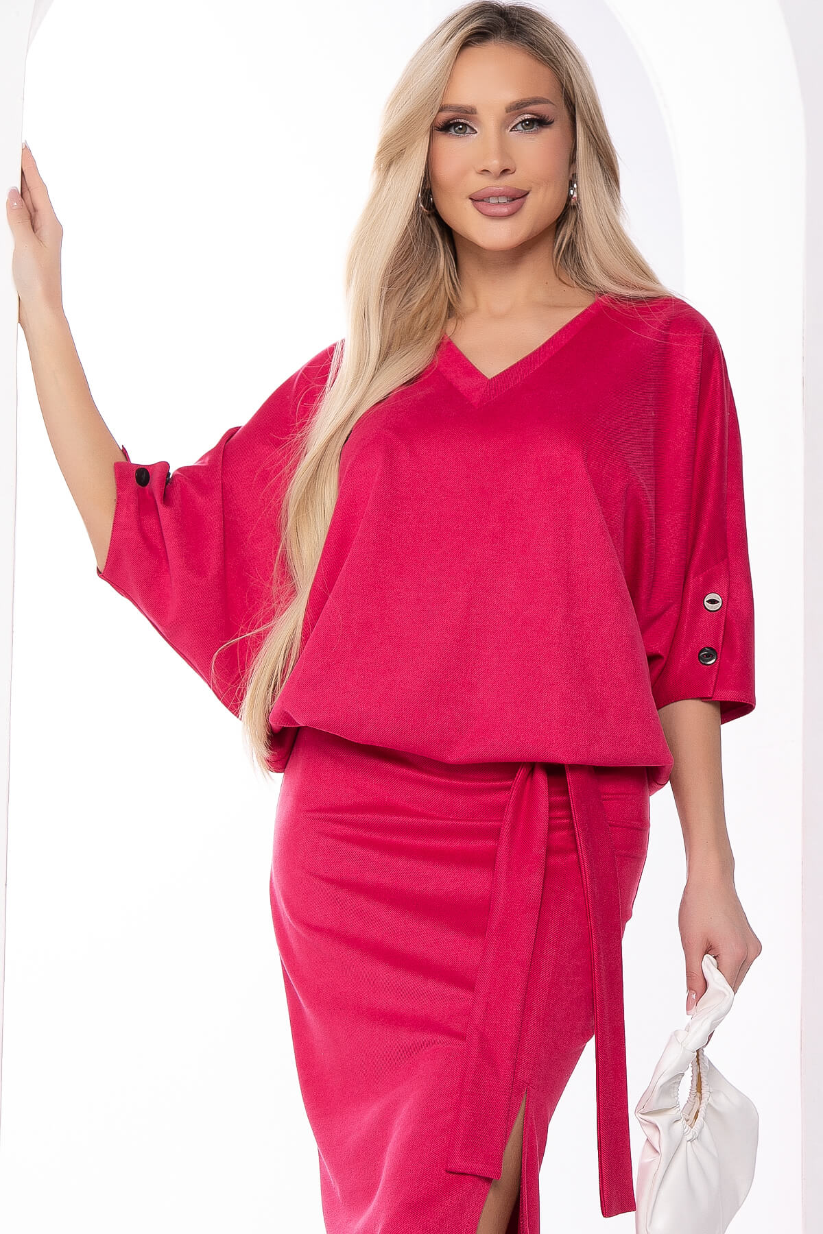 Платье из трикотажа в модном оттенке. Элегантная юбка с игривым разрезом визуально удлиняет ножки. Свободный крой платья скрывает недостатки фигуры. Рукав скроен по типу "летучая мышь", декорирован пуговицами. По талии отрезное. Идеальное решение на каждый день и на праздничное мероприятие.