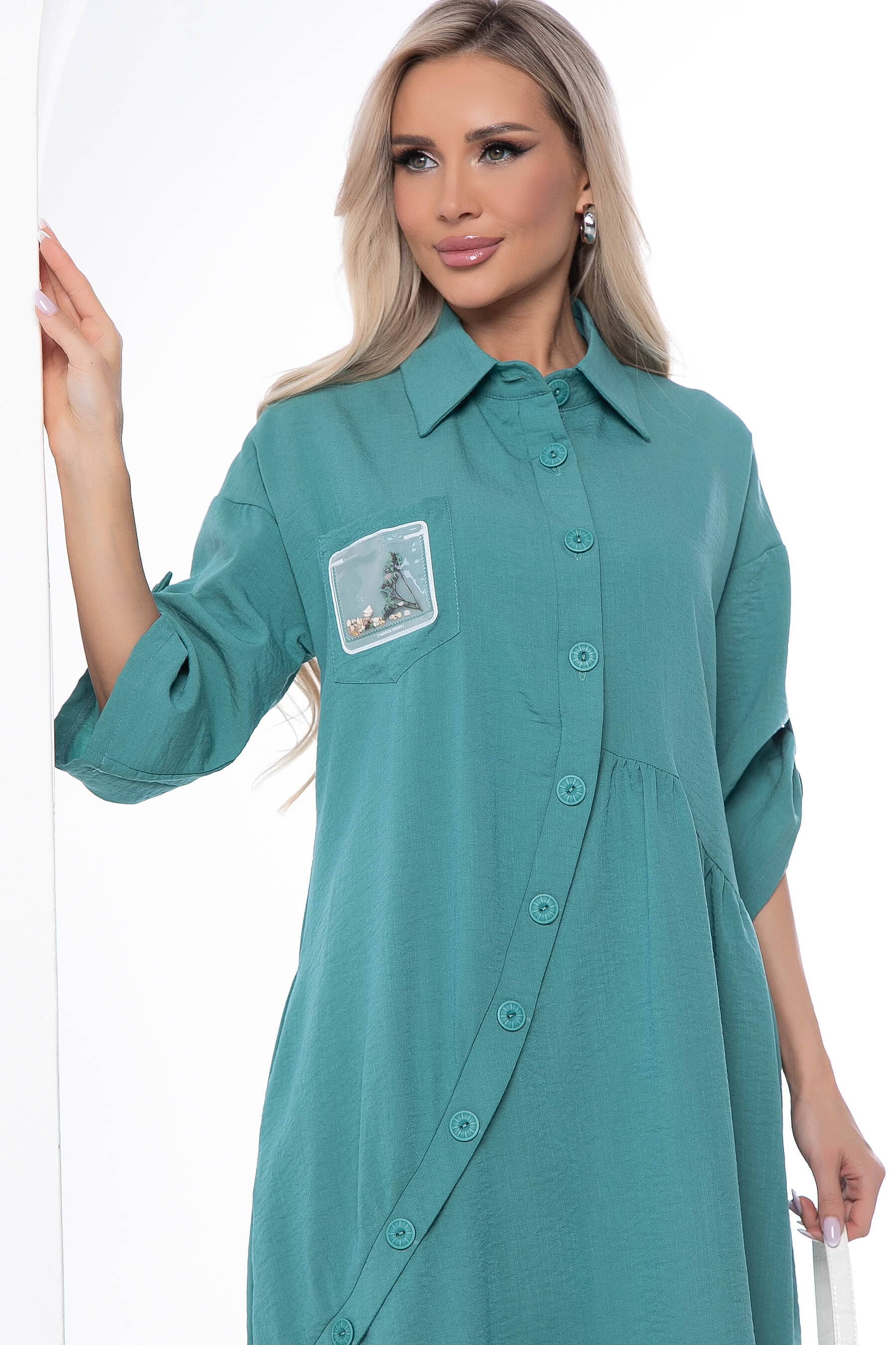 Стильное платье придаст вам привлекательности, при этом образ получится достаточно сдержанным и комфортным. Платье будет отлично смотреться даже без аксессуаров, украшает образ карман с декором. Рукав втачной со спущенным плечевым швом, длина - три четверти, подворачивается на пату. Функциональные пуговицы только в верхней части платья, по юбке присутствует имитация застежки.