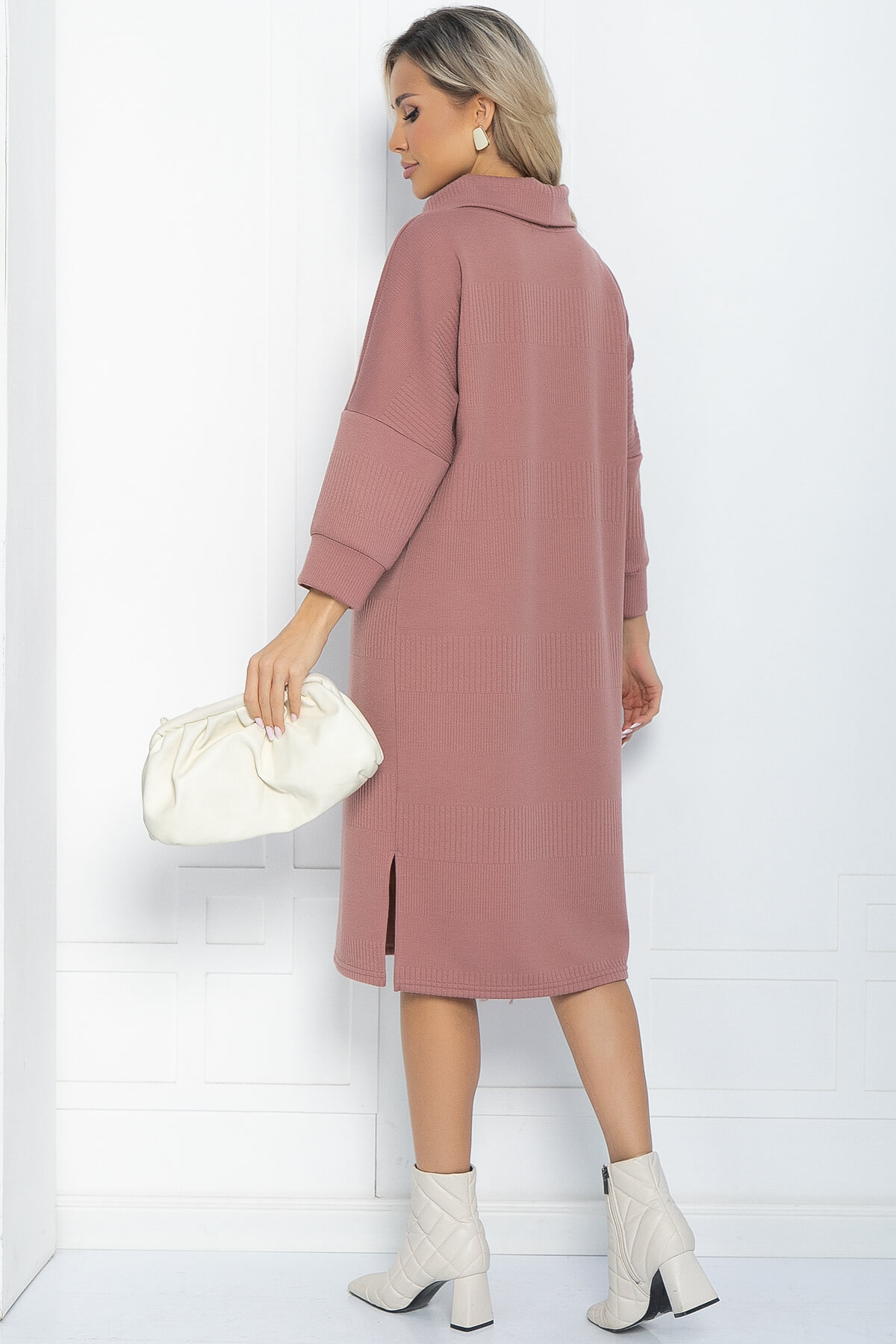 Женственное платье из трикотажа - вариант, который прекрасно подойдёт для создания стильного повседневного образа. Платье свободного кроя является самой удобной моделью платья, потому как скрывает недостатки и не ограничивает движений. Рукав три четверти, со спущенным плечевым швом, по низу манжет. В комплект входит пояс из основной ткани. По боковым швам изделия небольшие разрезы.