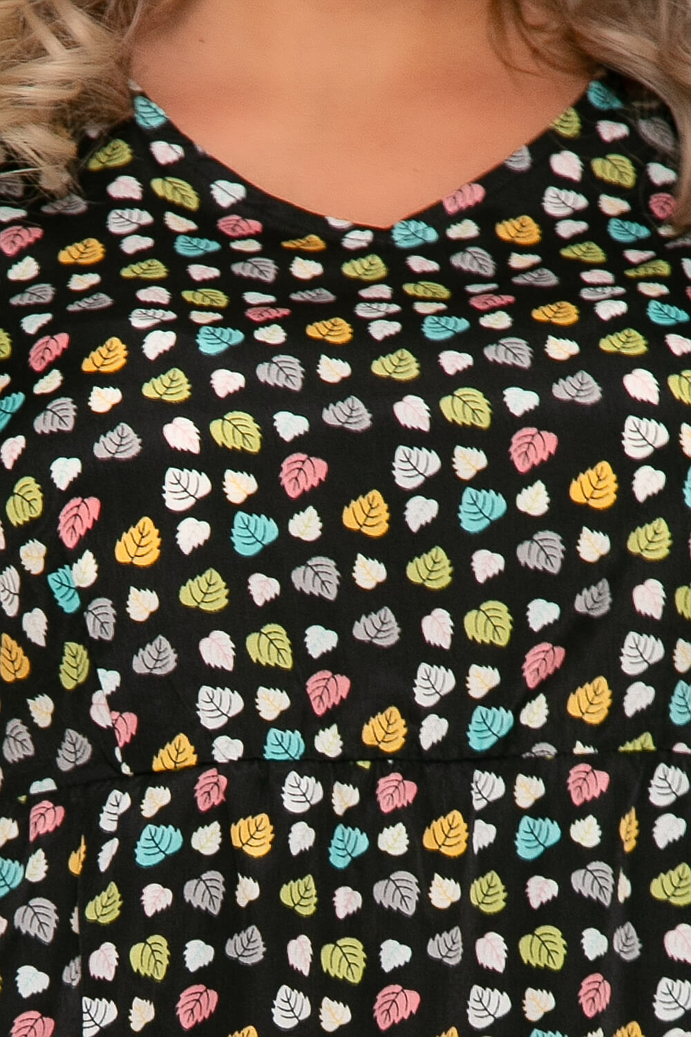 Платье с завышенной талией прекрасно справится с задачей скрыть небольшие изъяны фигуры и визуально придать ей большую стройность. Юбка состоит из широких воланов. Платье без рукавов, V-образный вырез горловины.