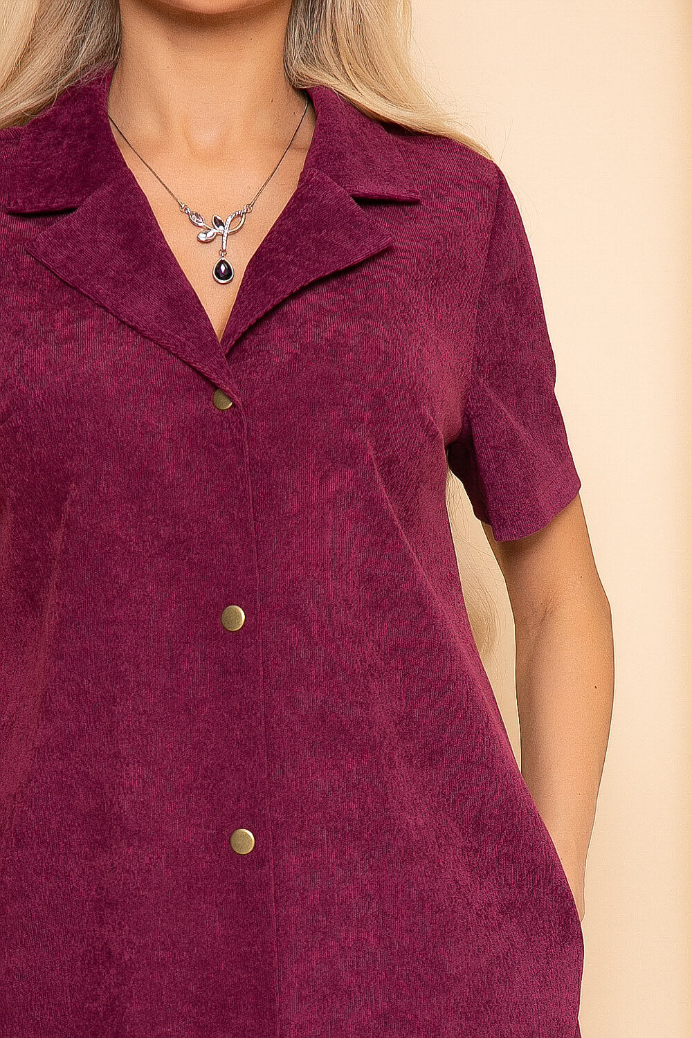 Платье-рубашка из вельвета - модное, женственное и абсолютно универсальное. Оно отлично проявляет себя в повседневных образах, как и подобает базовым вещам. Рукам втачной, короткий. По переду застёгивается на кнопки. В комплекте пояс из основной ткани.