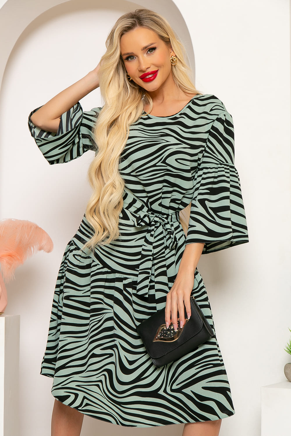 Летящее платье свободного кроя с красивым, ярким принтом! Платье будет актуально как на романтической прогулке, так и в повседневной носке. Шикарная, летящая юбка, с широким воланом добавляет романтичности и воздушности образу. Красивый рукав с богатым воланом, вырез горловины округлый. В комплекте пояс из основной ткани.