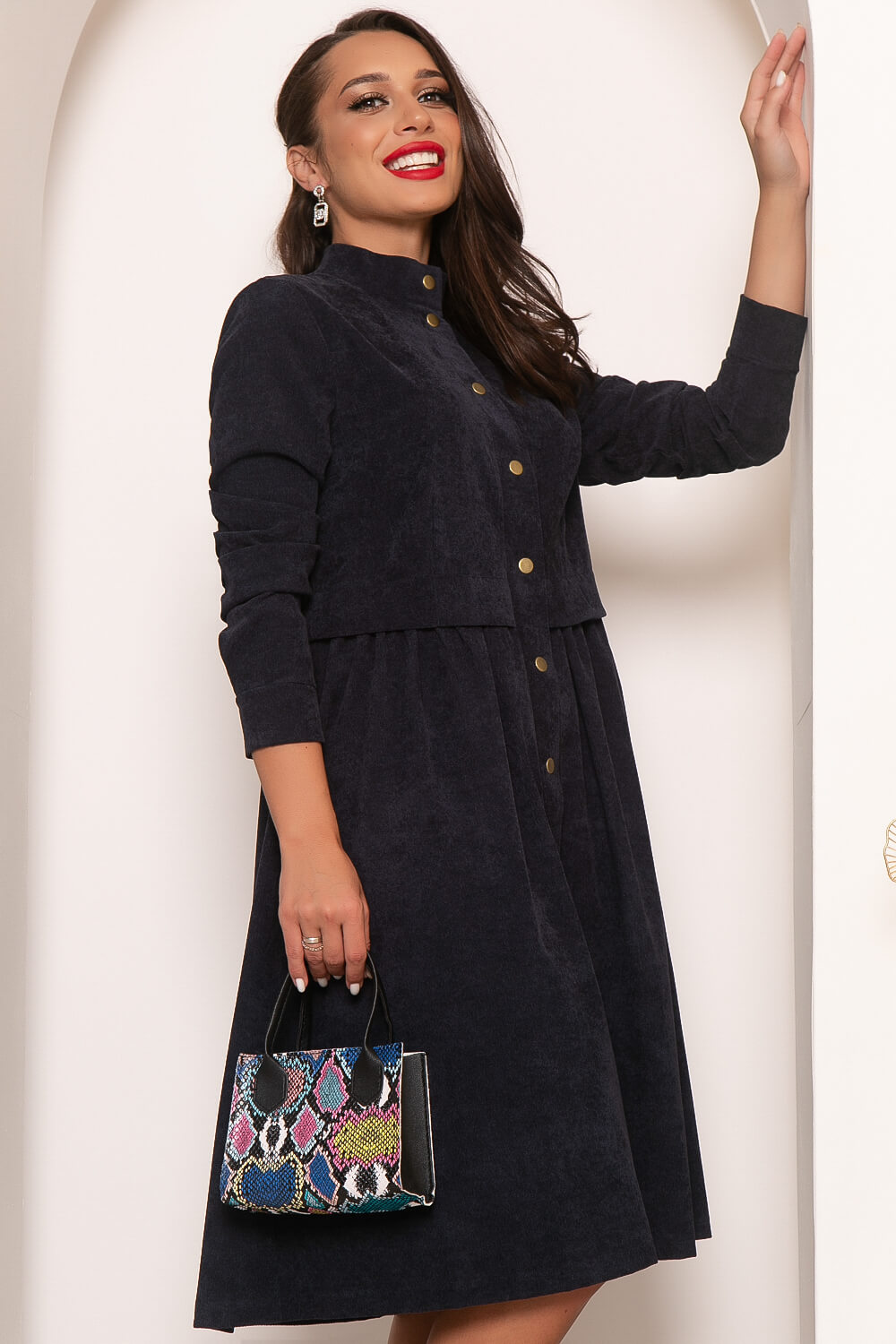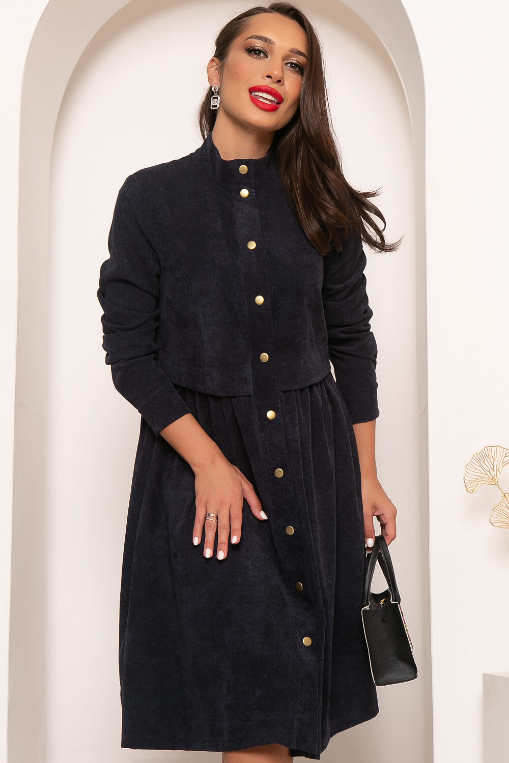 Базовое платье из вельвета - то, что нужно, чтобы оставаться стильной и женственной не смотря на бешеный темп жизни. Вельветовое платье в классическом синем оттенке станет незаменимым вариантом для повседневной носки в прохладный период. Комфорт, удобство, стильный фасон, гармоничная длина и ничего лишнего! Это абсолютно беспроигрышный вариант на каждый день!