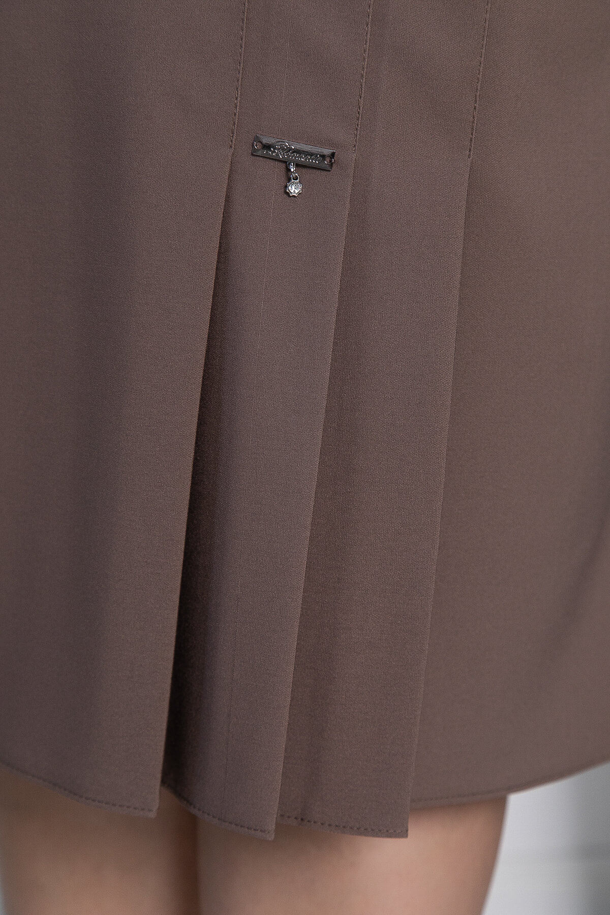 Стильная юбка длиной миди идеально сидит по фигуре, стройнит и вытягивает силуэт! Подойдет как для повседневного, так и для делового образа. По переду 3 складки с пришивным декором в виде полоски с бусинкой. На поясе по бокам расположена резинка.